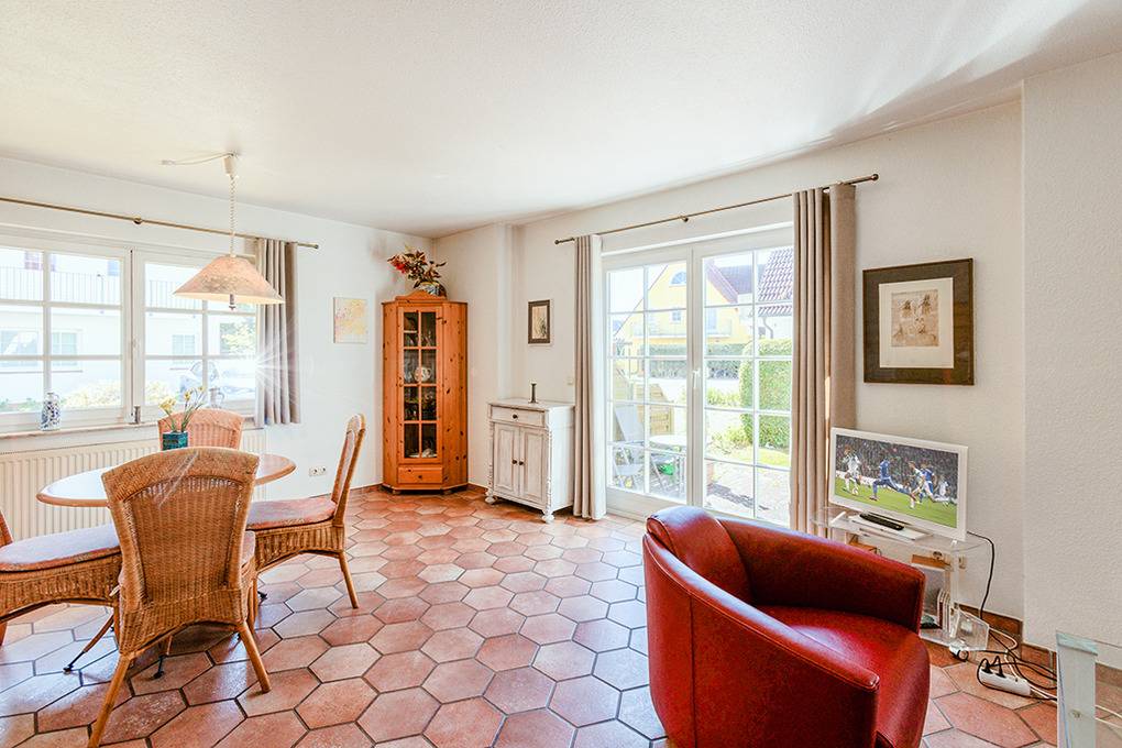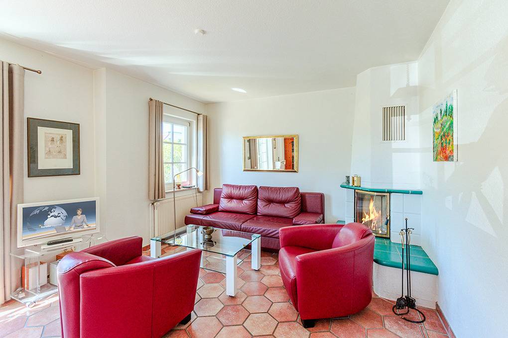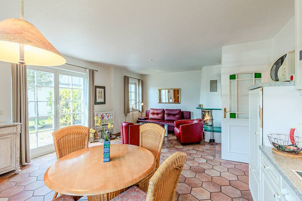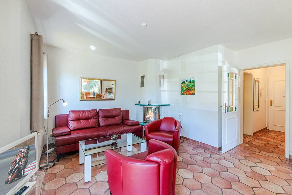 D 67.6112 Wohnung 2 Erw., 1 Kind: 2-Zimmerwohnung mit 50 qm Wohnfläche, Parterre. Wohn-/Essraum mit Kaminofen, Couchgarnitur (Ausziehcouch 1 Pers), Sat-TV, Esstisch, Küchenzeile (Backofen, Mikrowelle, Spülmaschine). Doppelzimmer. Bad/WC. Terrasse mit Sitzmöbeln.