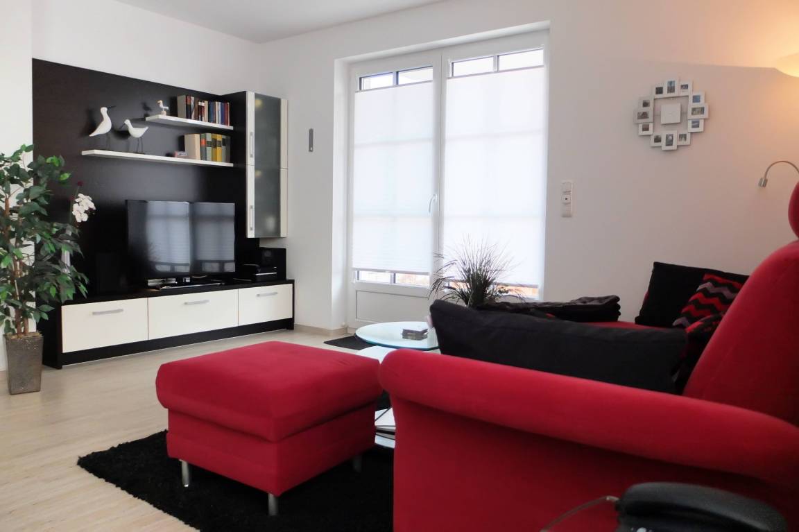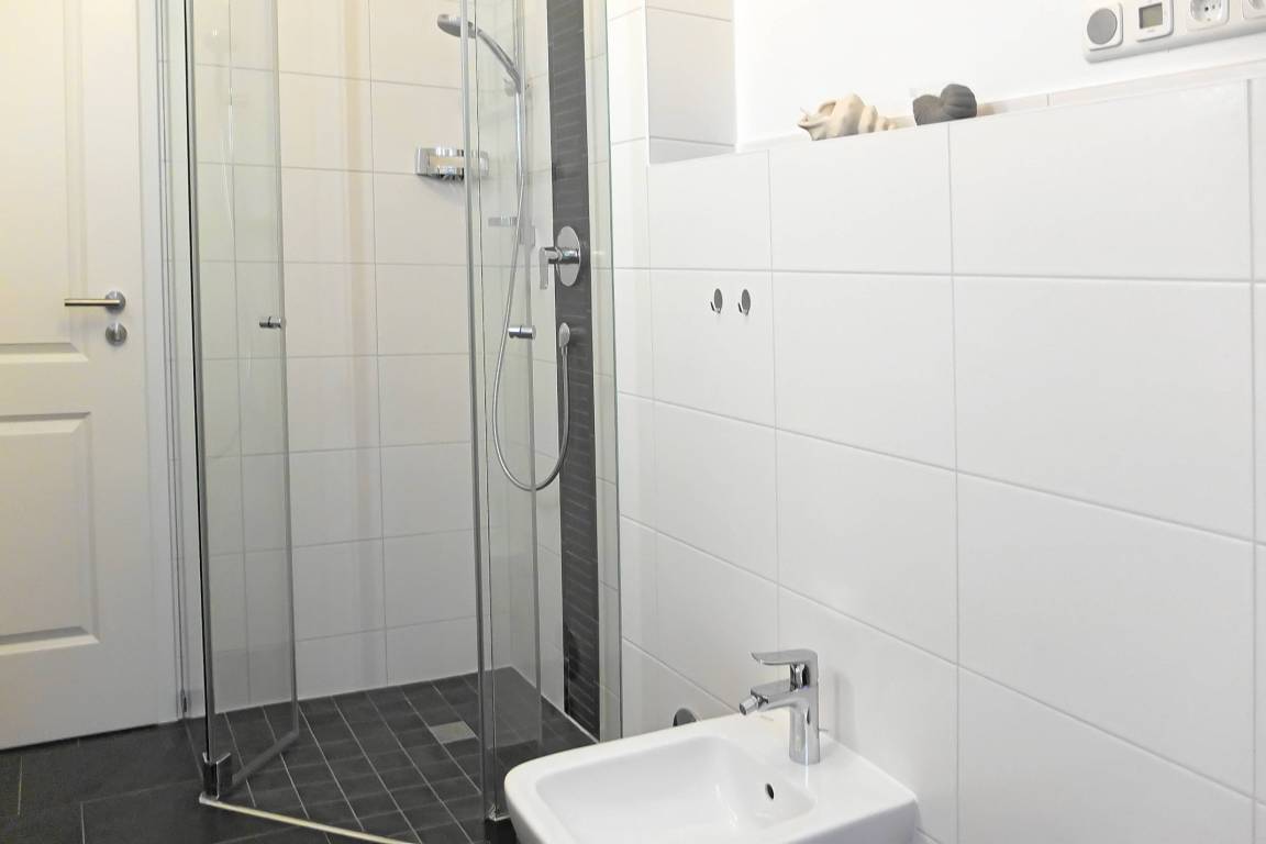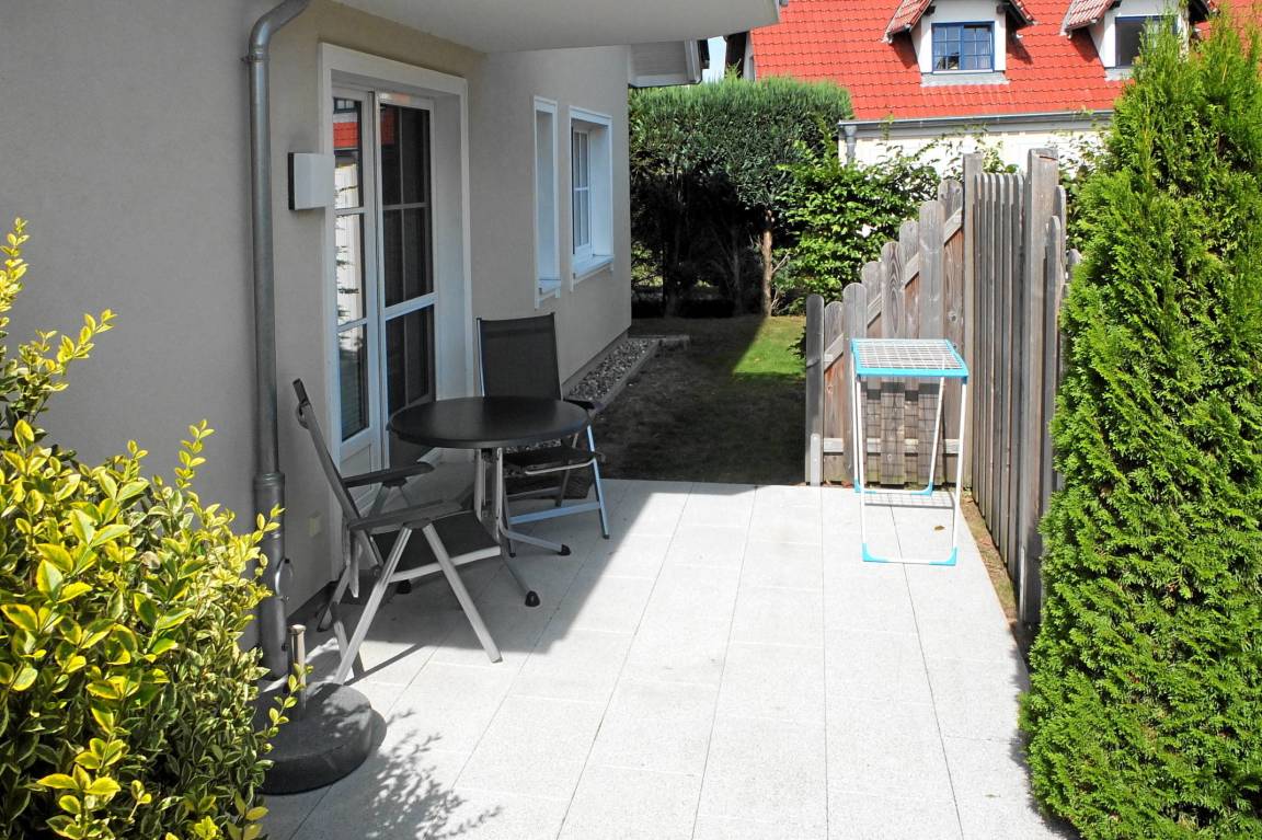 Die Wohnung liegt im Herzen von Zingst, Sie erreichen den Strandübergang 17, sowie den Hafen, nach nur ca. 600 Metern Fußweg, das Zentrum nach ca. 500 Metern und das Kurmittelcentrum nach nur ca. 300 Metern. Die FeWo verfügt über einen Schlafraum mit Doppelbett in Komforthöhe und in Überlänge (220x180 cm), sowie mit hochwertigen 7 Zonen Lattenrosten und Kaltschaummatratzen für hochwertigen Schlafkomfort nicht nur, aber besonders, für Menschen mit mehr als 190 cm Körperlänge. Das Bad verfügt über eine großzügige ebenerdige Dusche, einen großen Waschtisch mit Ablage und Spiegelpaneel, WC und Bidet in Komforthöhen. Der großzügige Wohnraum integriert eine vollständig ausgestattete Küche mit 98er Arbeitshöhe in offener Bauweise mit angrenzendem Essbereich. Bei entsprechender Wetterlage wird der Wohnraum vom Frühstück bis zum späten Nachmittag von Sonnenschein durchflutet. Im Wohnraum befindet sich ein DSL WLAN Internetzugang, ein Telefonanschluss für ankommende Gespräche, eine HiFi Anlage mit FM und DAB+ Radio, CD und DVD Player, sowie ein 42 Zoll LED Smart SAT HD -TV. Ein weiterer 32 Zoll HD LCD Fernseher befindet sich im Schlafraum. Die Fußbodenheizung in der gesamten Wohnung sorgt für ein angenehmes Wohnklima. Alle Wohnungstüren sind 210 cm hoch. Gartenmöbel stehen Ihnen auf der Terrasse zur Verfügung. Insektenschutzgitter in allen Räumen, sowie ein Parkplatz, gehören selbstverständlich zum Standard. Ihre Fahrräder können Sie im wohnungseigenen verschließbaren Schuppen abstellen.