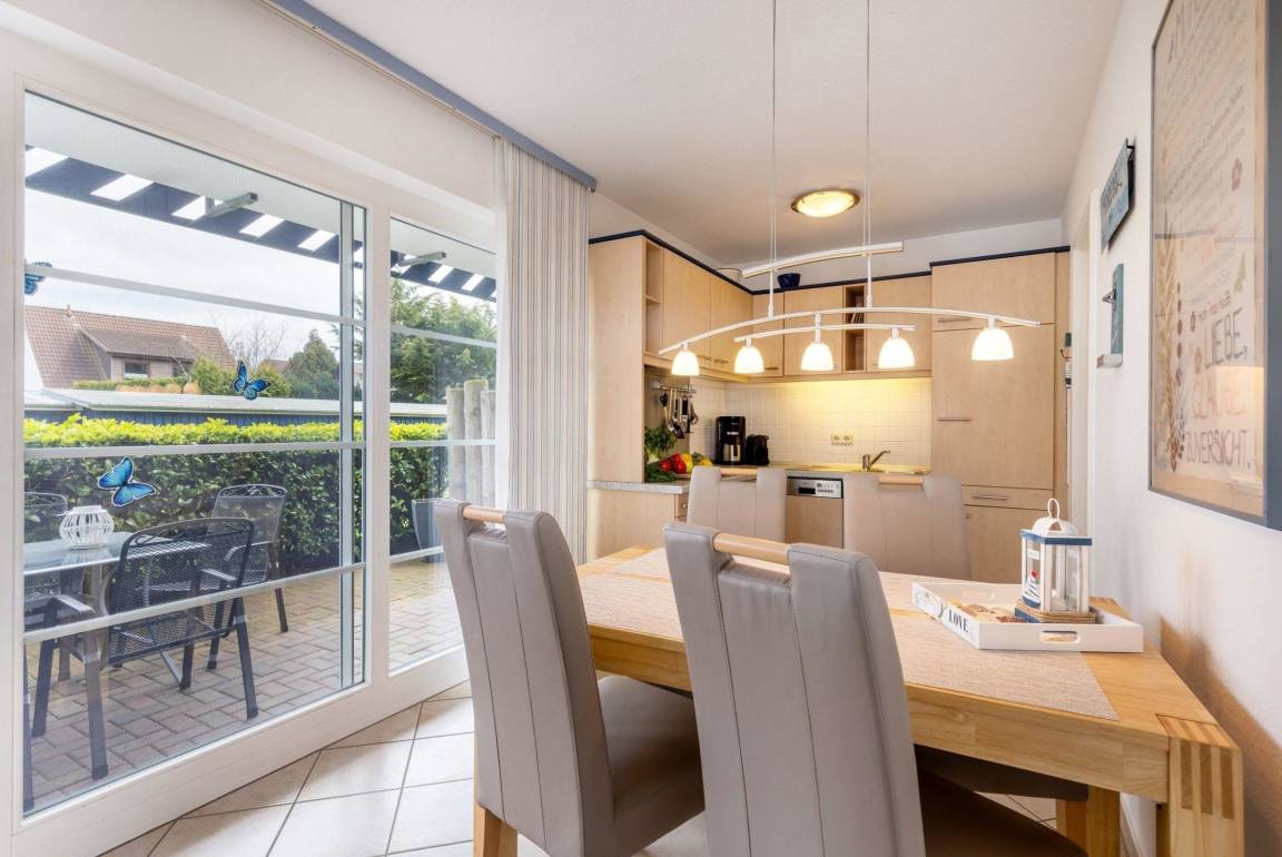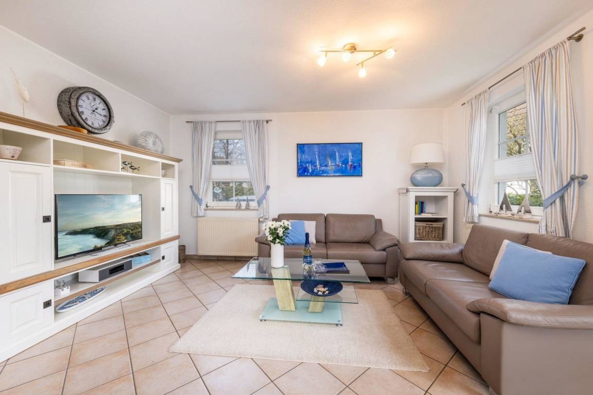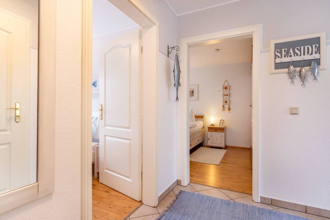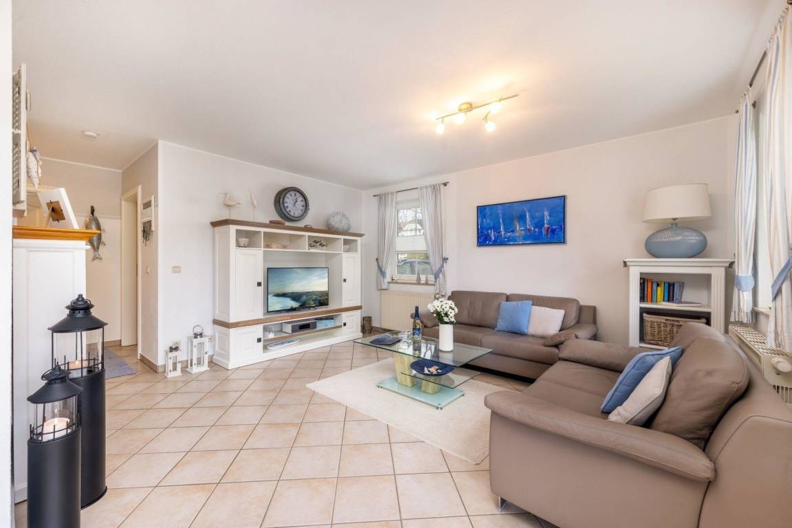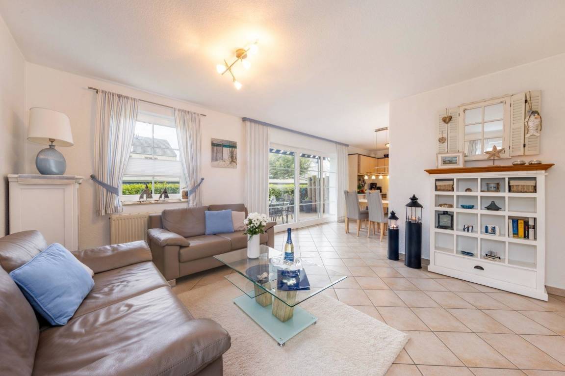 Die Maritime Wohnung in Strandnähe bietet auf 81 m² Wohnfläche Platz für bis zu vier Personen. Sie umfasst drei Zimmer, darunter zwei separate Schlafzimmer mit Doppelbetten, ausgestattet mit Fliesenboden und Sichtschutz. Der offene Wohn- und Essbereich lädt mit einer gemütlichen Sofaecke, einem Fernseher mit Satellitenanschluss sowie einem CD-Spieler und Radio zur Entspannung ein. Die voll ausgestattete Küche begeistert mit modernen Geräten, wie einem Ceranherd und einer Spülmaschine. Das großzügige Badezimmer verfügt über eine Dusche, eine Badewanne und eine Waschmaschine. Die Unterkunft ist mit Gasheizung sowie Internetzugang ausgestattet. Ein Parkplatz steht direkt am Objekt zur Verfügung. Die Wohnung ist ein Nichtraucherobjekt und eignet sich ideal für Paare und Familien.