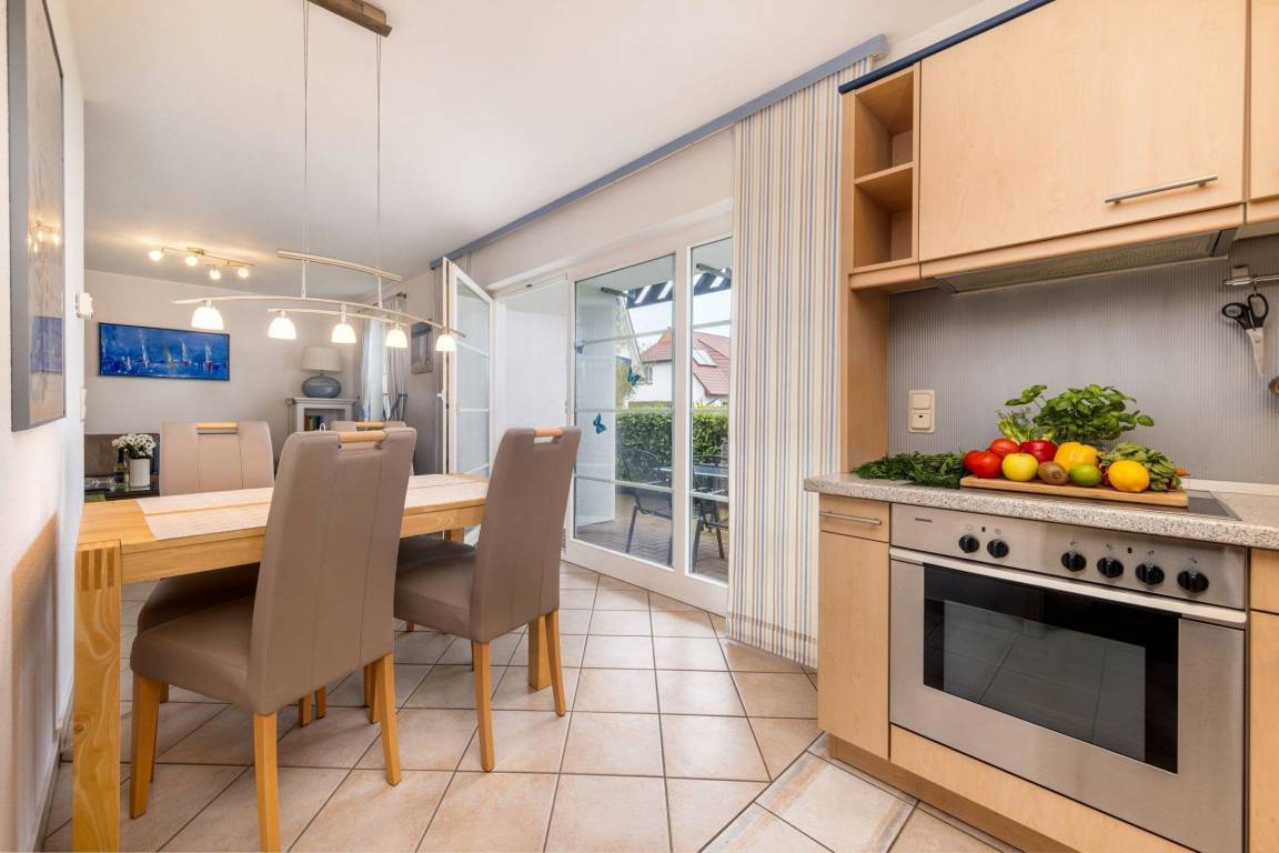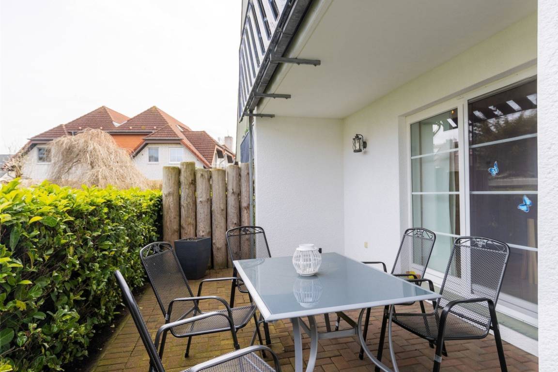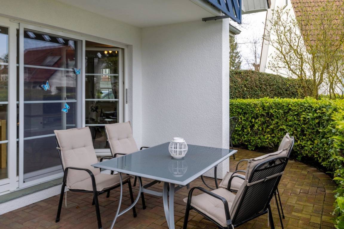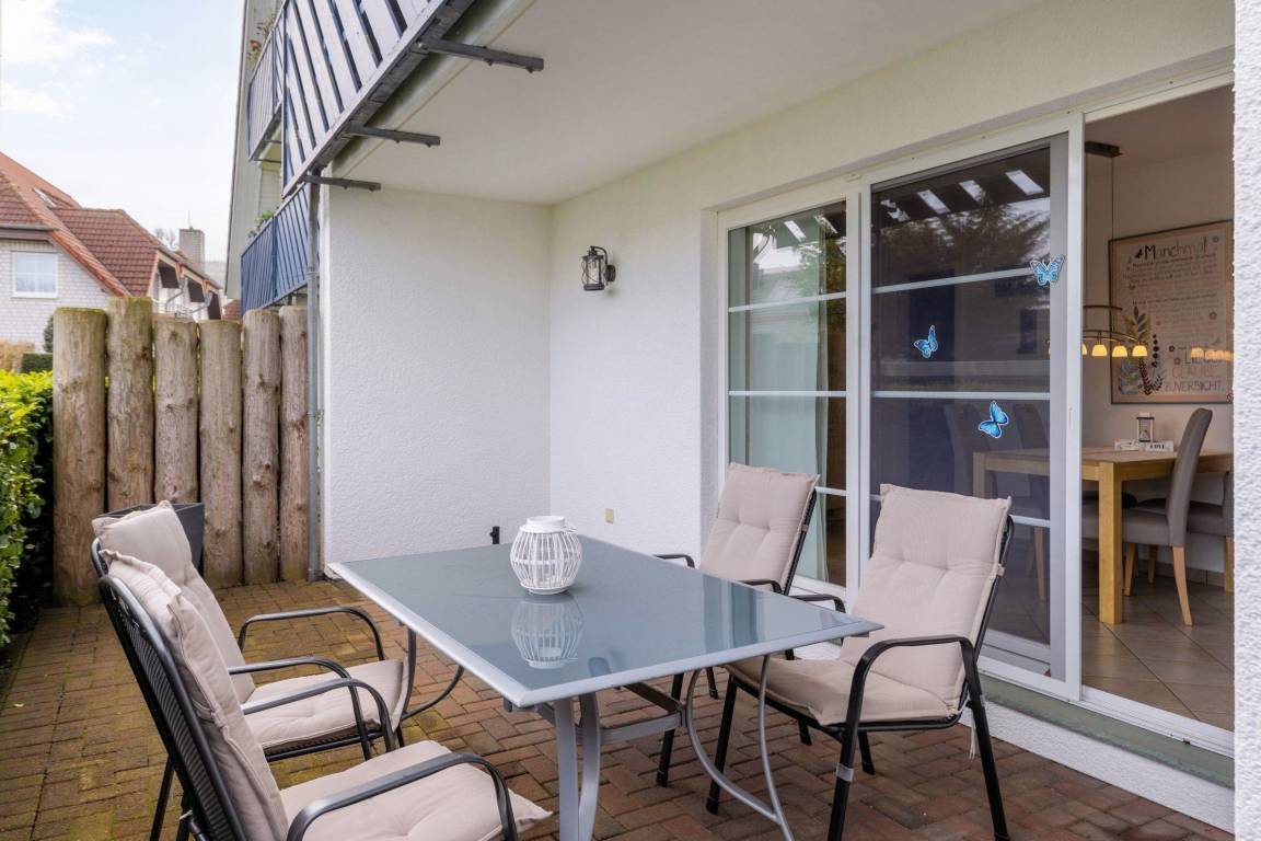 Der Außenbereich der maritimen Wohnung lädt zum Verweilen ein und bietet eine teilüberdachte Terrasse, die es ermöglicht, die frische Ostseeluft zu genießen, unabhängig von der Tageszeit. Gartenmöbel und Sonnenliegen stehen bereit und laden zum Entspannen ein. Die Wohnung befindet sich in unmittelbarer Nähe zum feinsandigen Ostseestrand, nur 400 Meter entfernt, ideal für Spaziergänge und Wassersportaktivitäten. Zudem bietet die großzügige Anlage vielfältige Freizeitmöglichkeiten wie Radfahren, Wandern und Beachvolleyball in der Umgebung. Familien sind herzlich willkommen, und Kinder finden zahlreiche Beschäftigungsangebote vor Ort. Der Privatparkplatz am Haus sorgt für zusätzlichen Komfort während des Aufenthalts. Die Unterkunft ist ein Nichtraucherobjekt, das zuletzt im Jahr 2023 renoviert wurde und über Einrichtungen wie Gasheizung und Internetzugang verfügt.