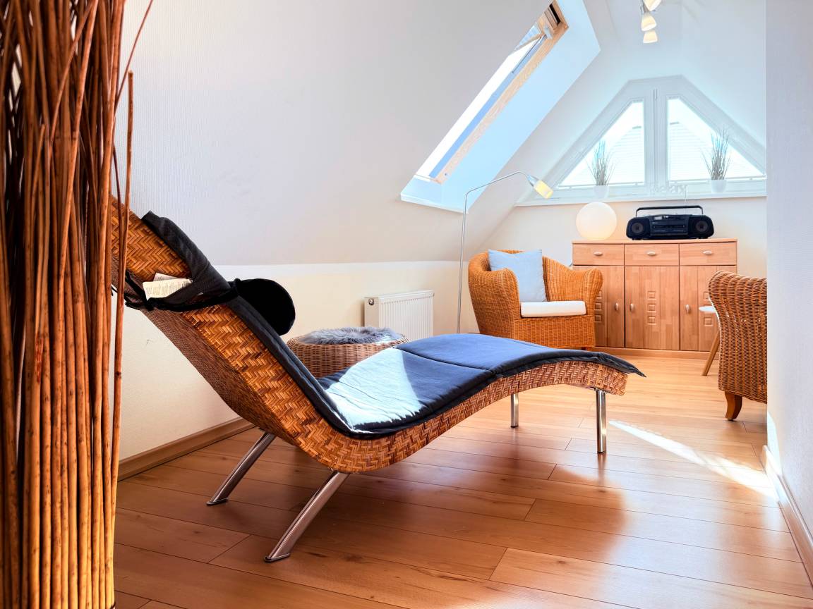 Südwest-Terrasse mit Strandkorb (Mai–Oktober) und Holzkohlegrill