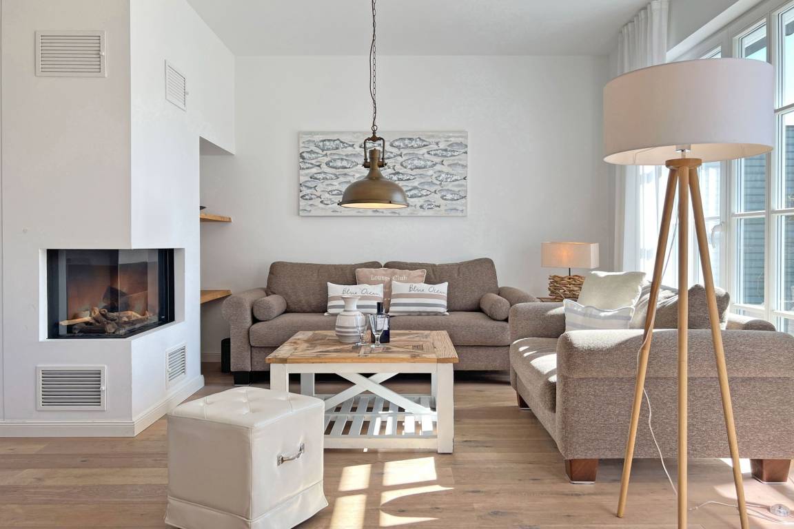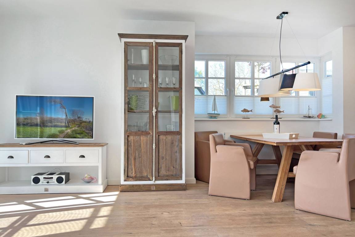 Wohnbereich: Heller, großzügiger Wohn- und Essbereich mit Gaskaminofen, LED-TV und Unterhaltungselektronik