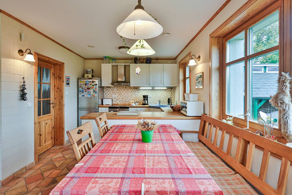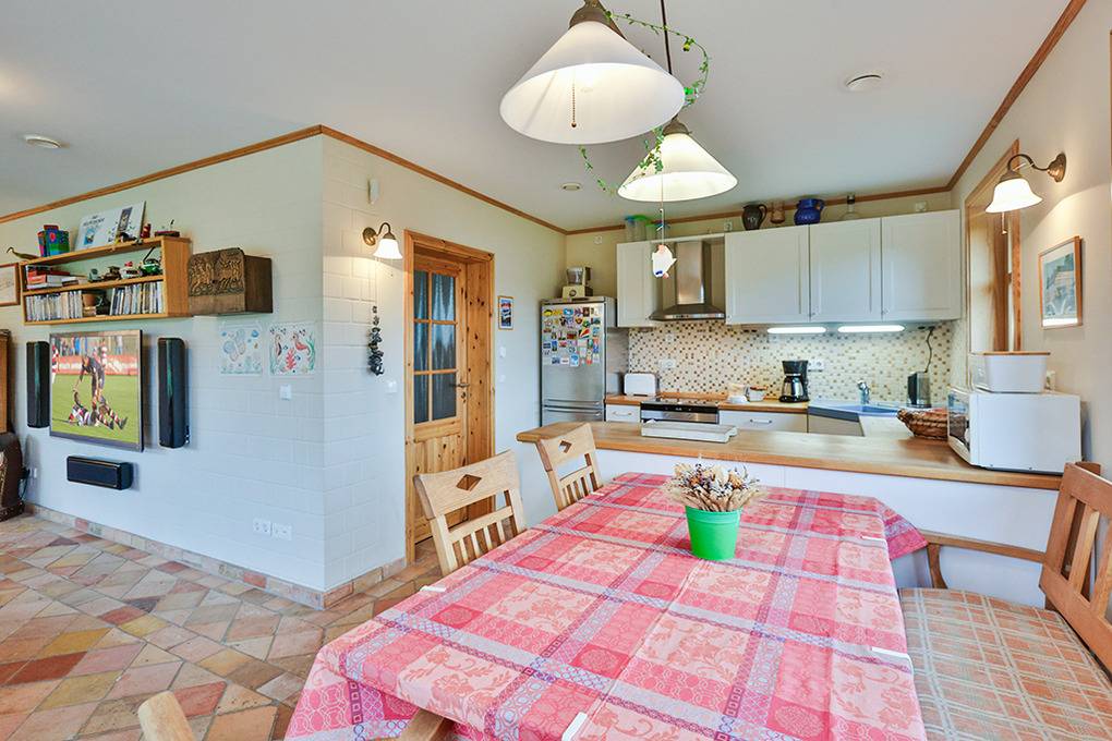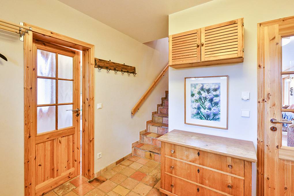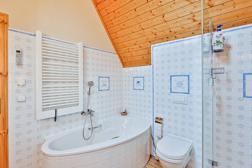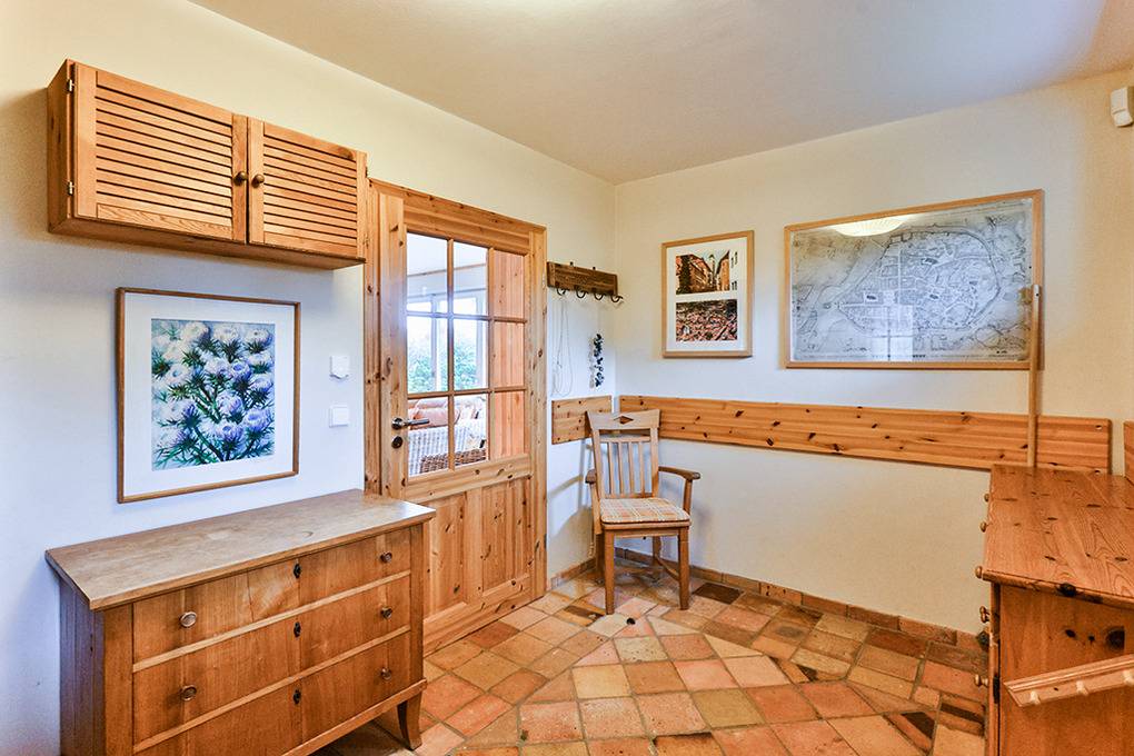 Haus: Großzügiges Ferienhaus auf 1650 qm großem Gartengrundstück. Das Haus besticht durch sein großes Platzangebot: 130 qm Wohnfläche, 3 Schlafzimmer, 2 Bäder. Moderne, geschmackvolle Einrichtung im Landhausstil. Kostenloser Internetzugang über W-Lan. Zentralheizung. Allergikerfreundliches Nichtraucherhaus. Balkon. Große Terrasse mit Sitzmöbeln. Weitläufiger Garten mit zwei kleinen Fußballtoren, Baumhaus. 2 Pkw-Stellplätze am Haus.