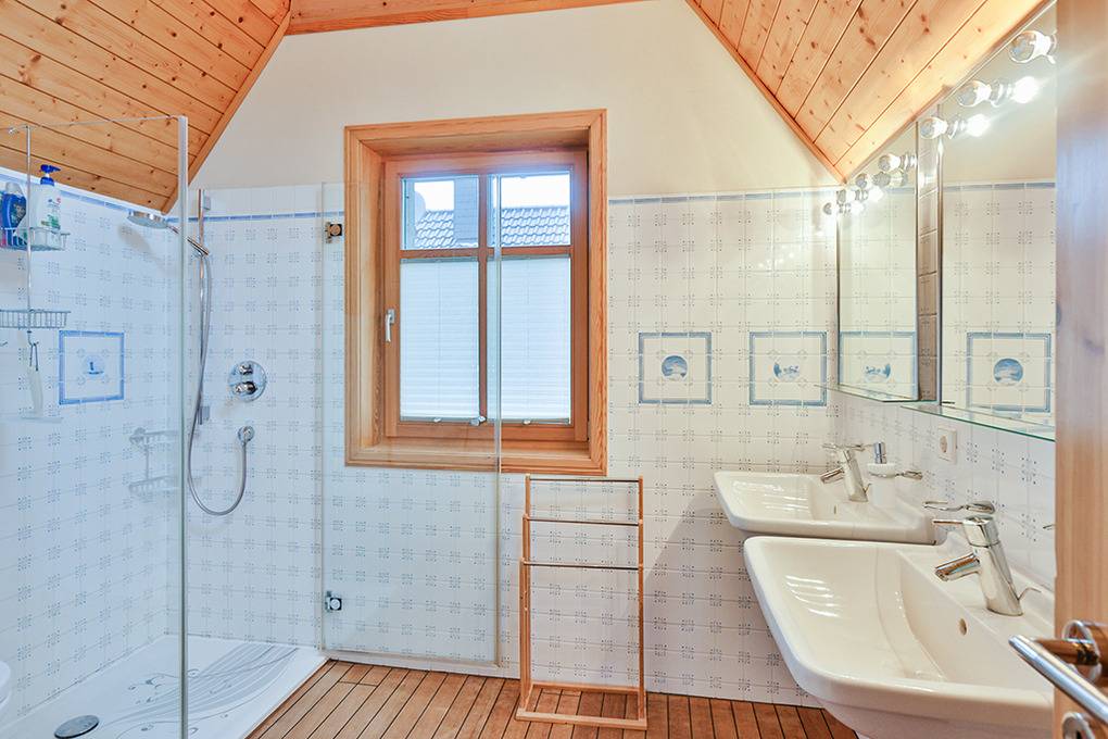 D 67.105 Ferienhaus 1-4 Erw., 1-4 Kinder (bis 12 Jahre): Komfortables 4-Zimmerhaus mit 130 qm Wohnfläche über 2 Etagen. Parterre: Heller Wohn-/Essraum mit Couchgarnitur, Smart-TV (Sat-TV) mit Dolby Surround Anlage, Klavier, gemütlicher Essbereich mit Esstisch, gut ausgestatteter Einbauküche mit Backofen, Mikrowelle, Spülmaschine. Hauswirtschaftsraum mit Waschmaschine. Kleines Bad: Du, Wb, WC. 1. Etage: Doppelzimmer mit französischem Bett (140 x 200 cm) und zusätzlichem Kinderbett aus Holz. Zwei 3-Bettzimmer mit Einzelbett, Hochbett (140 cm X 200 cm). Bad: Du, Eck-Bw, 2 Wb, WC. Balkon.