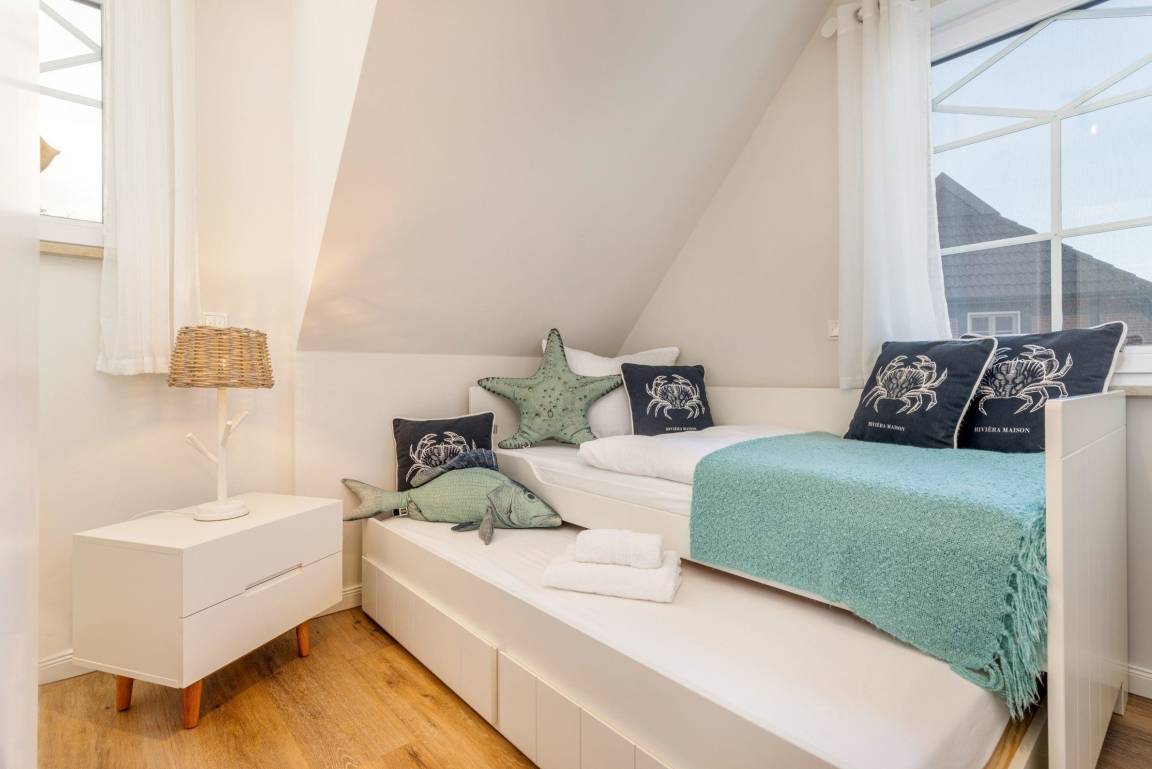 Das neu erbaute Ferienhaus Nordlicht wurde im Juli 2020 fertiggestellt und überzeugt durch eine hochwertige Ausstattung. Auf 148 qm bietet es Platz für bis zu 6 Personen. Der großzügige Wohn-Essbereich mit einer Kücheninsel und einer gemütlichen Sitzecke mit Kamin schafft eine einladende Atmosphäre. Im Erdgeschoss befindet sich ein großes Duschbad, das auch eine Sauna umfasst, sowie ein Abstellraum mit Waschmaschine und Trockner. Im Obergeschoss finden sich zwei Schlafzimmer mit komfortablen Boxspringbetten (180 x 200 cm) und ein weiteres Schlafzimmer mit einem Kojenbett für zwei Personen. Das Familienbadezimmer ist mit einer Dusche und einer Badewanne ausgestattet. Die moderne Einrichtung und die liebevollen Details verleihen dem Haus ein wohlfühlendes Ambiente und machen es zu einem idealen Ort für unvergessliche Urlaubsmomente.