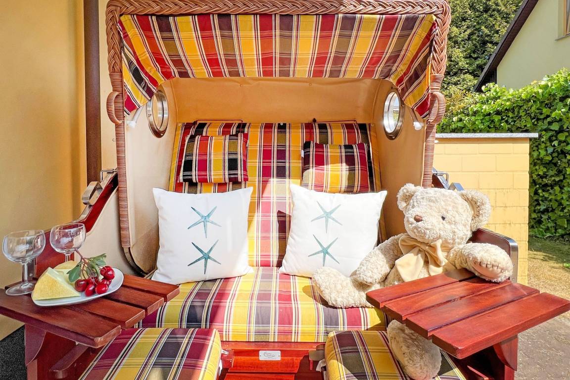 Nach einem erlebnisreichen Tag an der frischen Ostseeluft lädt die private Sauna zum Entspannen ein und bietet die perfekte Möglichkeit, müde Muskeln zu lockern und zur Ruhe zu kommen. Starten Sie den Tag auf der sonnigen Terrasse mit einem gemütlichen Frühstück oder genießen Sie abends die letzten Sonnenstrahlen im Garten. Der eigene Strandkorb und die hochwertigen Gartenmöbel bieten zusätzlichen Komfort für entspannte Stunden im Freien.