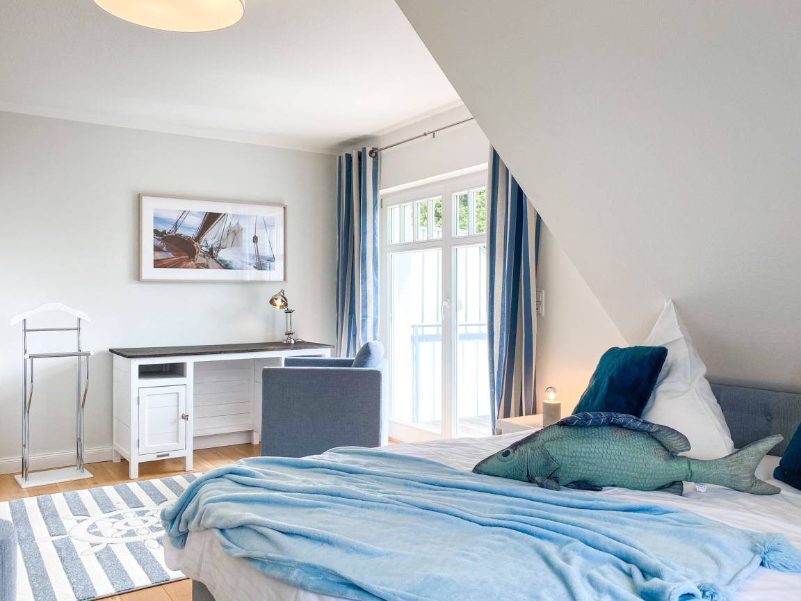 Drei Schlafzimmer: alle mit hochwertigen Boxspringbetten, eines mit Balkon und Schreibtisch