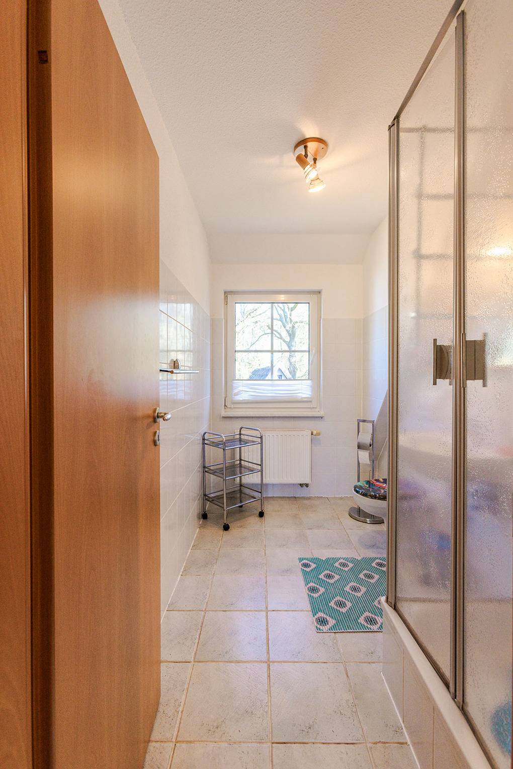Haus: Einzelstehendes Landhaus auf großem Grundstück. Tierhaltung am Haus (1 Hund, Tauben, Gänse, Hühner und Stockenten). Geschmackvoll eingerichtete Nichtraucher-Ferienwohnung. Kostenloser Internetzugang über W-Lan. Zentralheizung. Sitzecke im Garten des Vermieters. Parkplatz am Haus.