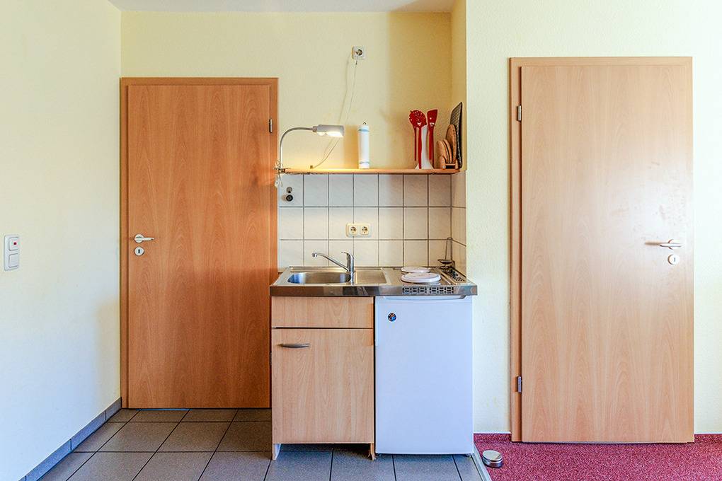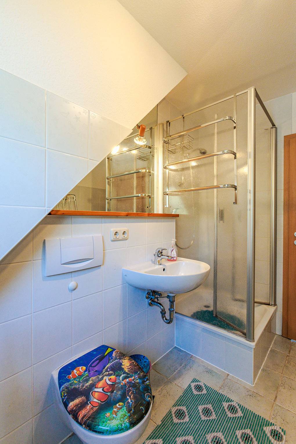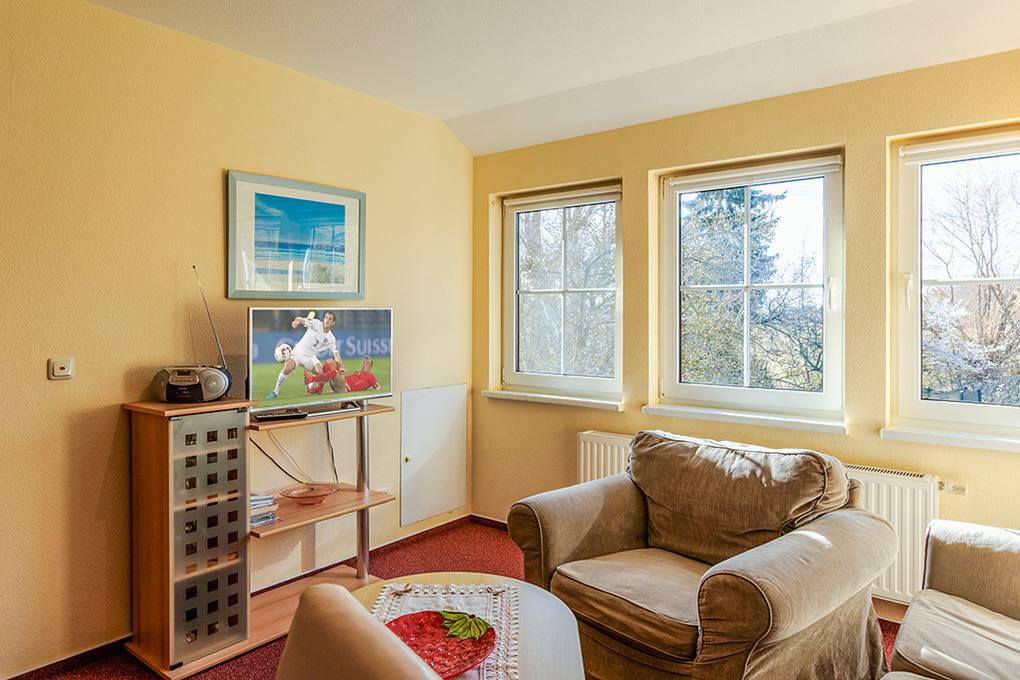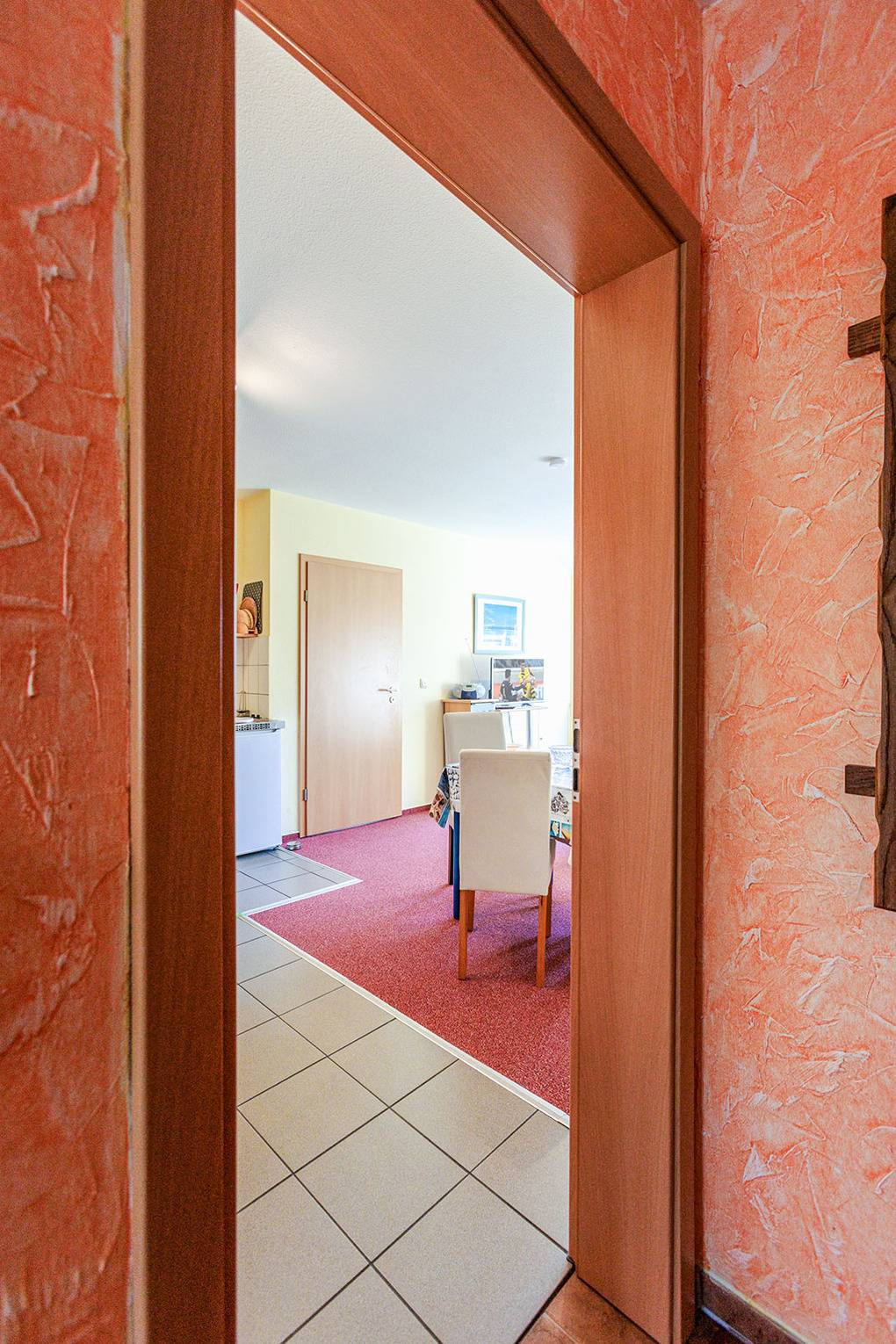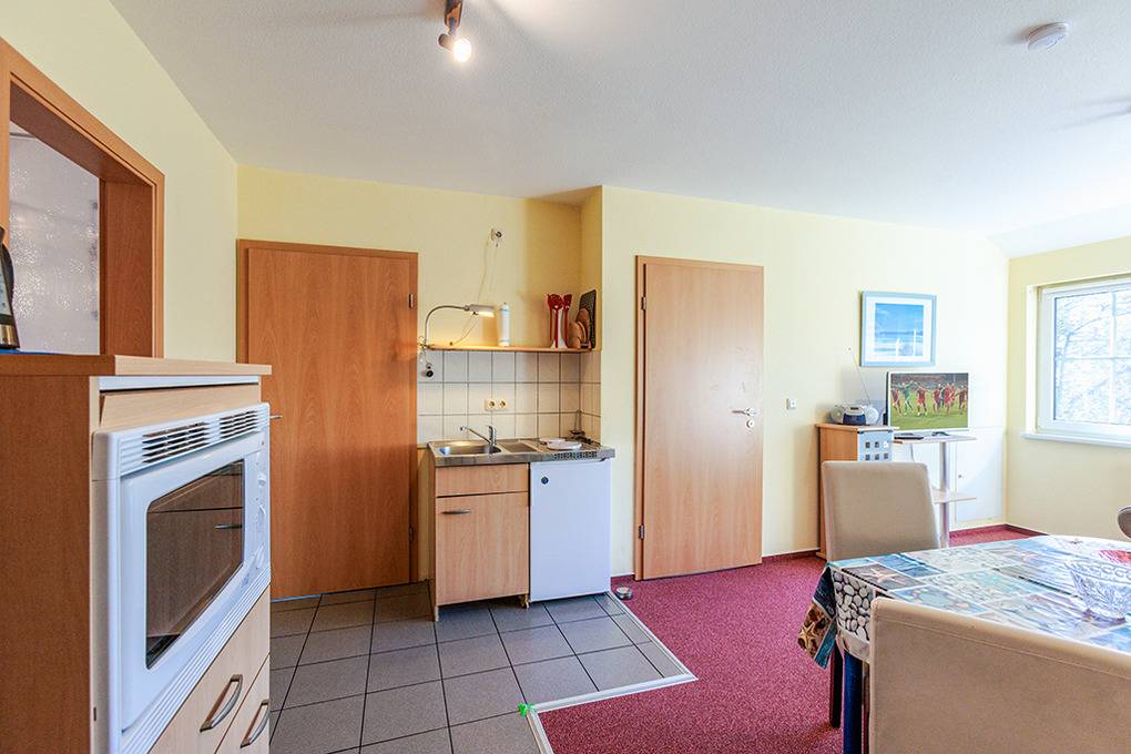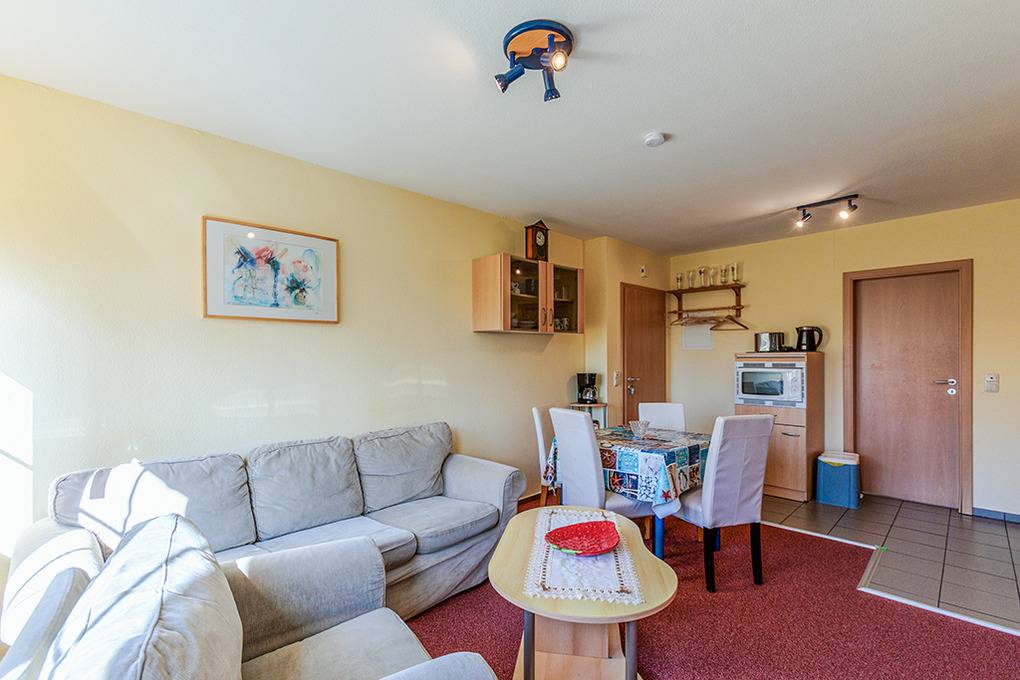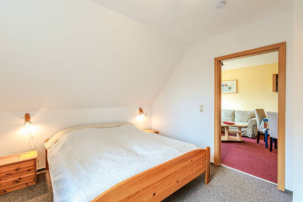 D 67.19 Wohnung 1-4 Pers.: 3-Zimmerwohnung mit 55qm Wohnfläche, 1. Etage. Freundlich eingerichteter Wohn-/Essraum mit Sitzgarnitur, Sat-TV, Radio, Esstisch, Pantryküche (Mikrowelle). 2 Doppelzimmer. Bad/WC.