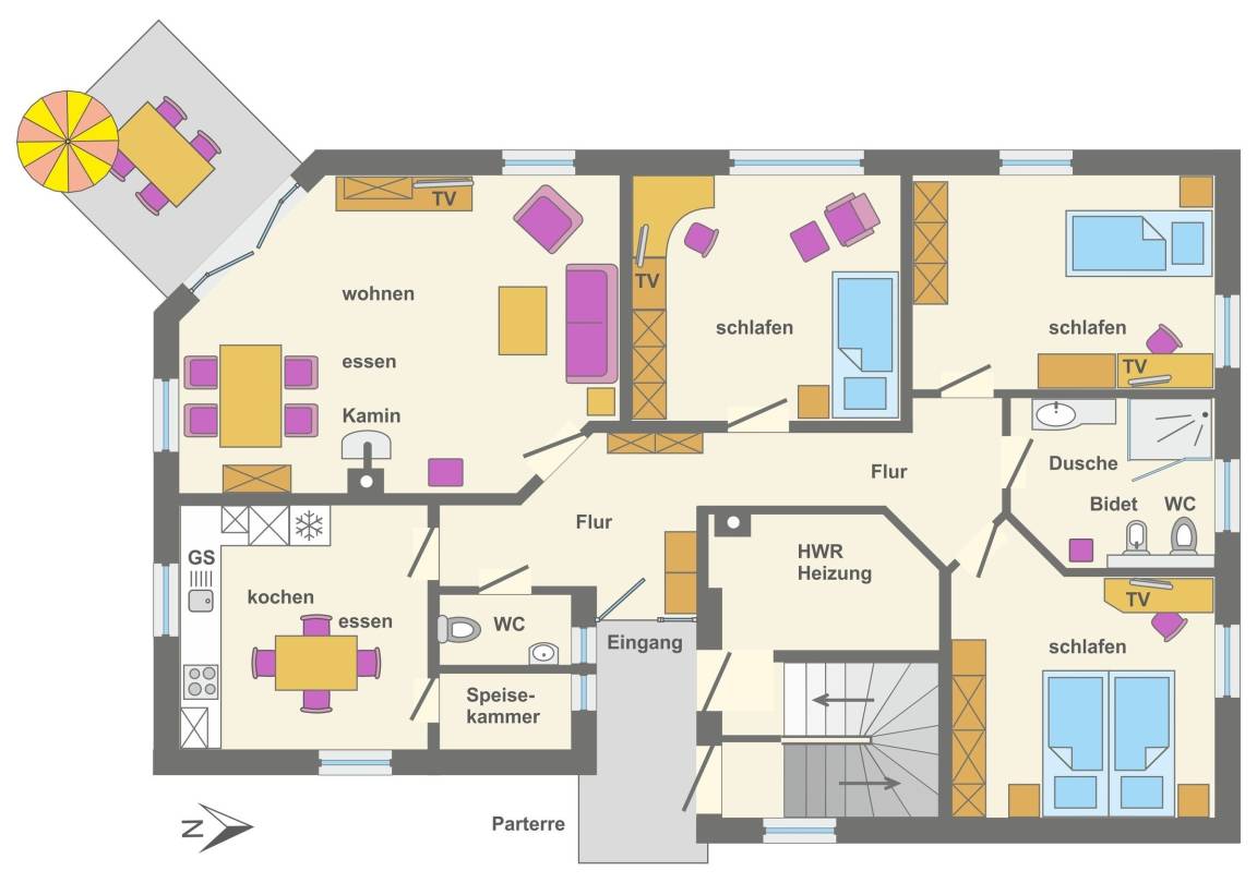 bei Anmietung durch 2 Personen ein Schlafzimmer, weitere Schlafzimmer können zugebucht werdenRäume & Aufteilung