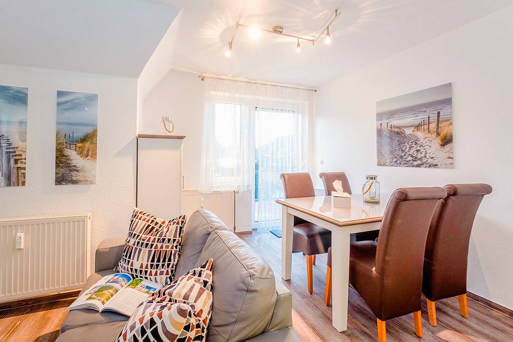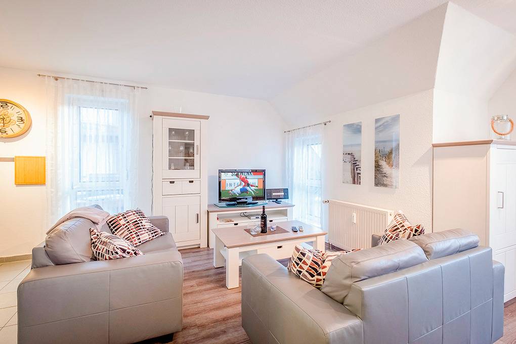 D 67.0103 Wohnug 1-4 Pers.: 3-Zimmerwohnung mit 68 qm Wohnfläche, 1. Etage. Nichtraucherwohnung. Wohn-/Essraum mit Couchgarnitur, Sat-TV, Esstisch, Küchenzeile (Backofen, Spülmaschine). Zwei Doppelzimmer. Bad/WC. Balkon.