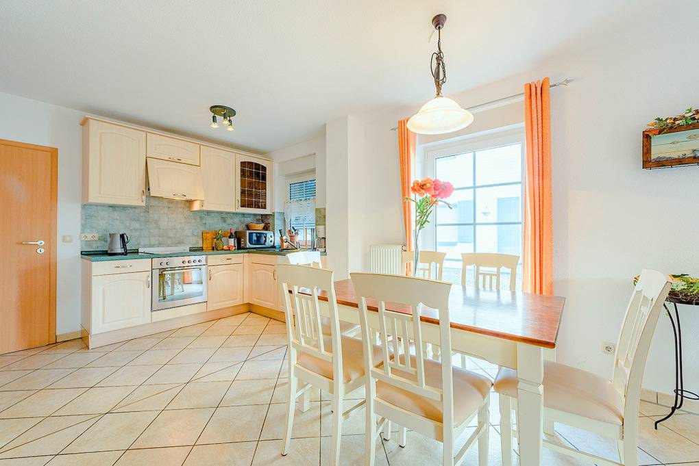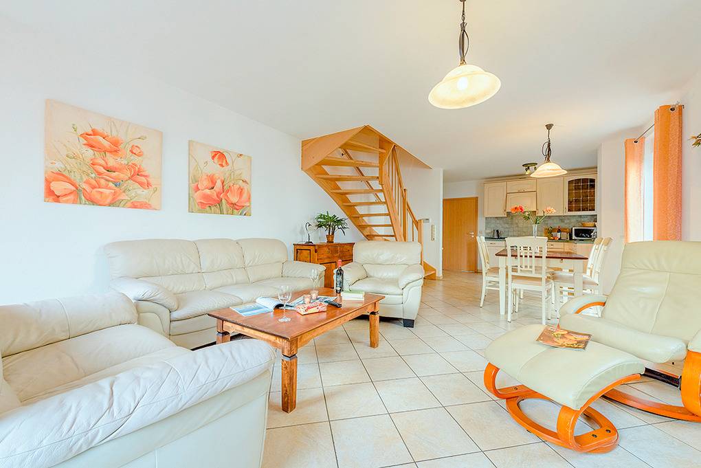 Nebenkosten 19,50 €/Pers. (werden bei Buchung erhoben). Kurtaxe. Bettwäsche leihbar 13 €/Pers (Bestellung, wird bei Buchung erhoben). Handtücher leihbar 9 €/Pers (Bestellung, wird bei Buchung erhoben). Zusätzliche Leistungen 2 Pkw-Stellplätze vorhanden. Kinder Babybett zusätzlich zur maximalen Personenzahl 2,50 €/Tag (Bestellung, wird bei Buchung erhoben). Hochstuhl 2,50 €/Tag (Bestellung, wird bei Buchung erhoben). Haustier 7 €/Tag, max. 1 Hund (Anmeldung, wird bei Buchung erhoben).Räume & Aufteilung
