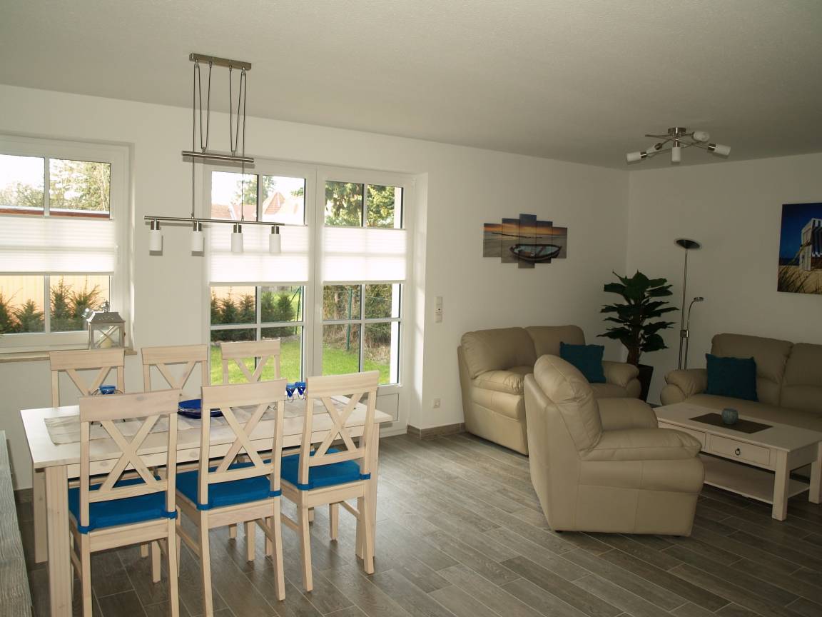 Die sonnendurchflutete Wohnung im Erdgeschoß mit großzügiger Westterrasse und kleinem Garten in ruhiger aber doch zentraler Lage befindet sich in einer der schönsten Ferienregionen der Ostsee, dem Ostseeheilbad Zingst.