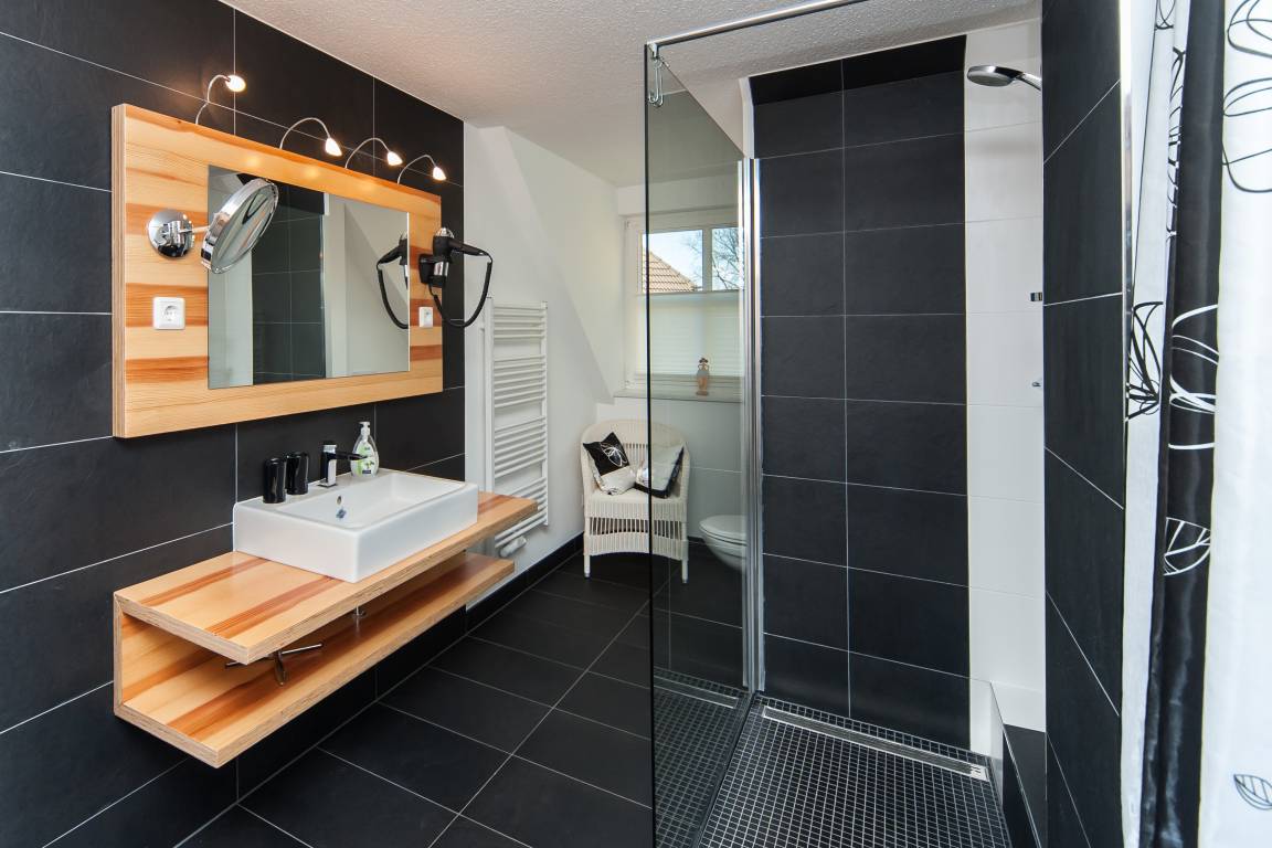 - das Bad hat eine ebenerdige Dusche und eine Wärmekabine
