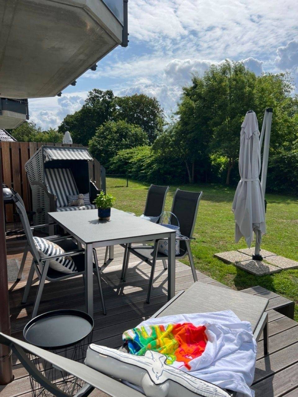 Die exklusive Wohnung ist optimal für bis zu vier Personen und punktet mit einer großzügigen Südwestterrasse und einem eigenen Garten. Fahrräder können sicher in der hauseigenen Garage abgestellt werden. Genießen Sie die entspannende Atmosphäre und den unmittelbaren Zugang zum Strand für einen unvergesslichen Aufenthalt.