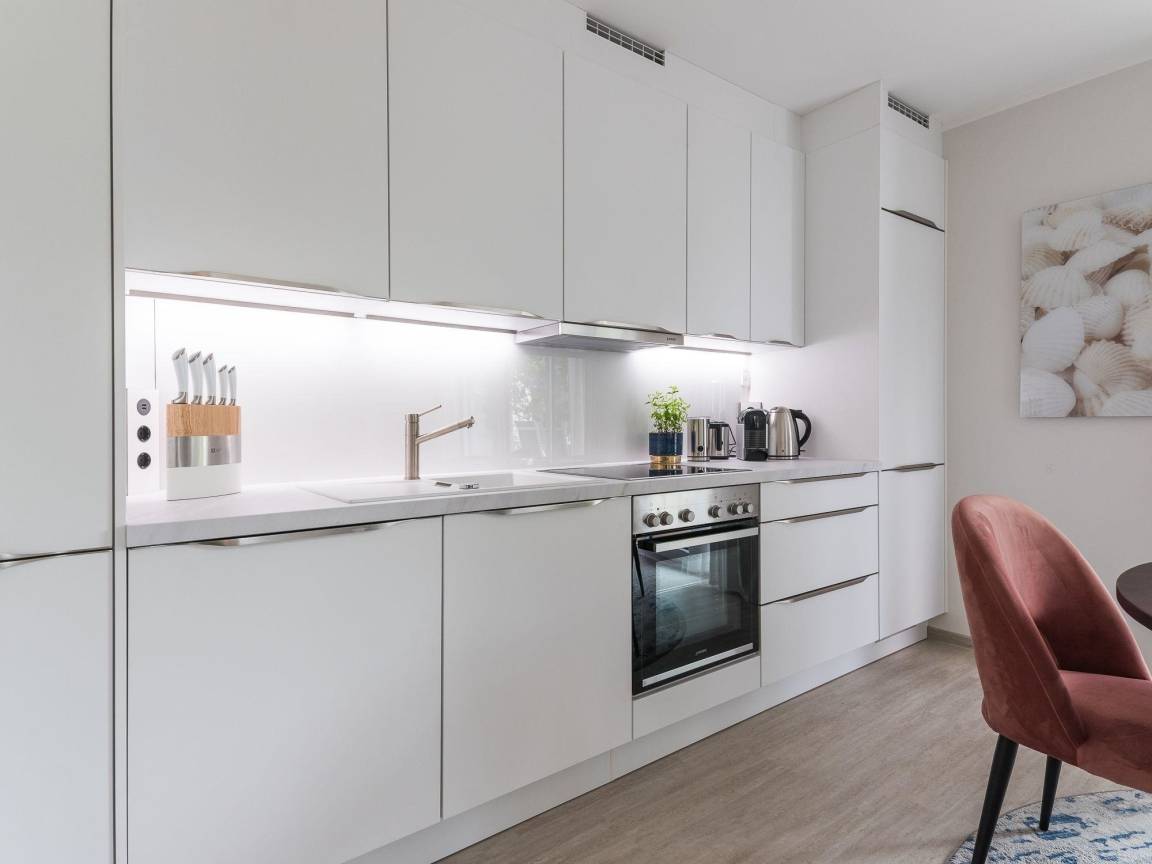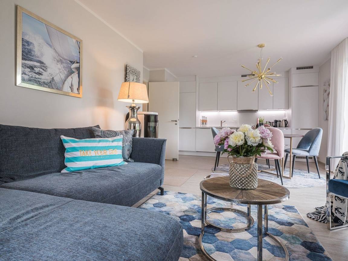 Das moderne Ferienapartment "Strandfein" in der Villa Baltic bietet auf 74 m² großzügigen Platz für bis zu vier Personen. Der offene Wohn- und Essbereich ist mit einer bequemen Couch, einem TV und einem Kaminofen ausgestattet, während die voll ausgestattete Küche alle nötigen Annehmlichkeiten bietet. Es gibt zwei Schlafzimmer, jeweils mit hochwertigen Boxspringbetten – eines mit 200 x 200 cm und das andere mit 180 x 200 cm, beide mit TV. Das helle Bad beeindruckt mit einer bodengleichen, begehbaren Dusche. Ein besonderes Highlight ist die Infrarotkabine für zwei Personen. Kostenloses WLAN, eine Waschmaschine sowie ein Parkplatz in der Tiefgarage stehen zur Verfügung. Zudem gibt es gemeinschaftliche Fahrradstellplätze in der Einfahrt und der Fahrradgarage im Garten. Eine E-Ladestation für Elektroautos kann gegen Gebühr genutzt werden.