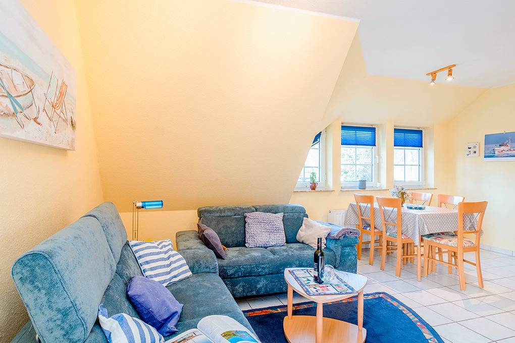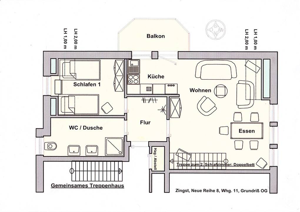 Ort: Zingst. Ruhige Lage in einer Wohnsiedlung. Ortsmitte mit Einkaufsstraße, Restaurants 400 m. Bodden mit idyllischem Hafen 900 m. Ostseestrand 800 m.