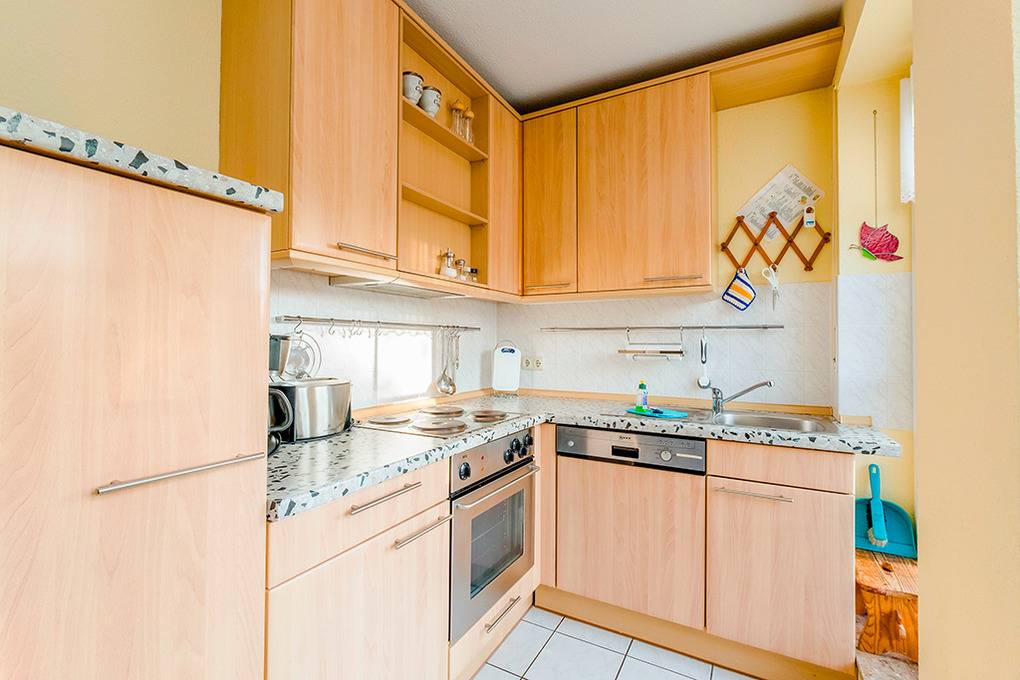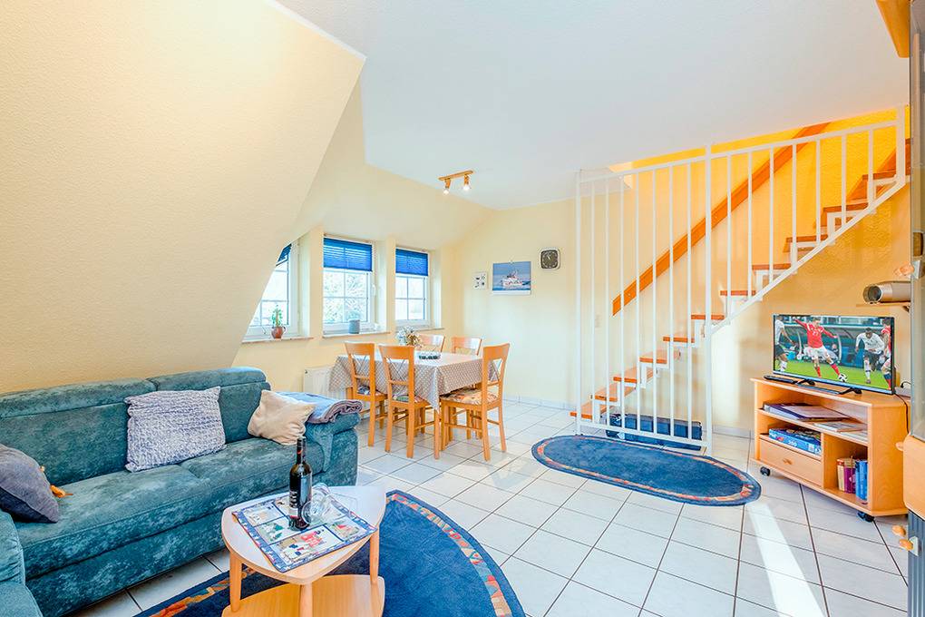 D 67.1911 Wohnung 1-4 Pers.: 3-Zimmerwohnung mit 60 qm Wohnfläche über 2 Etagen, 1. Etage. Wohn-/Essraum mit Couchgarnitur, Sat-TV, Esstisch, Küchenzeile (Backofen, Spülmaschine). 2-Bettzimmer. Bad: Du, Wb, WC, Waschmaschine. Treppe ins ausgebaute Dachgeschoss: Doppelzimmer. Balkon.