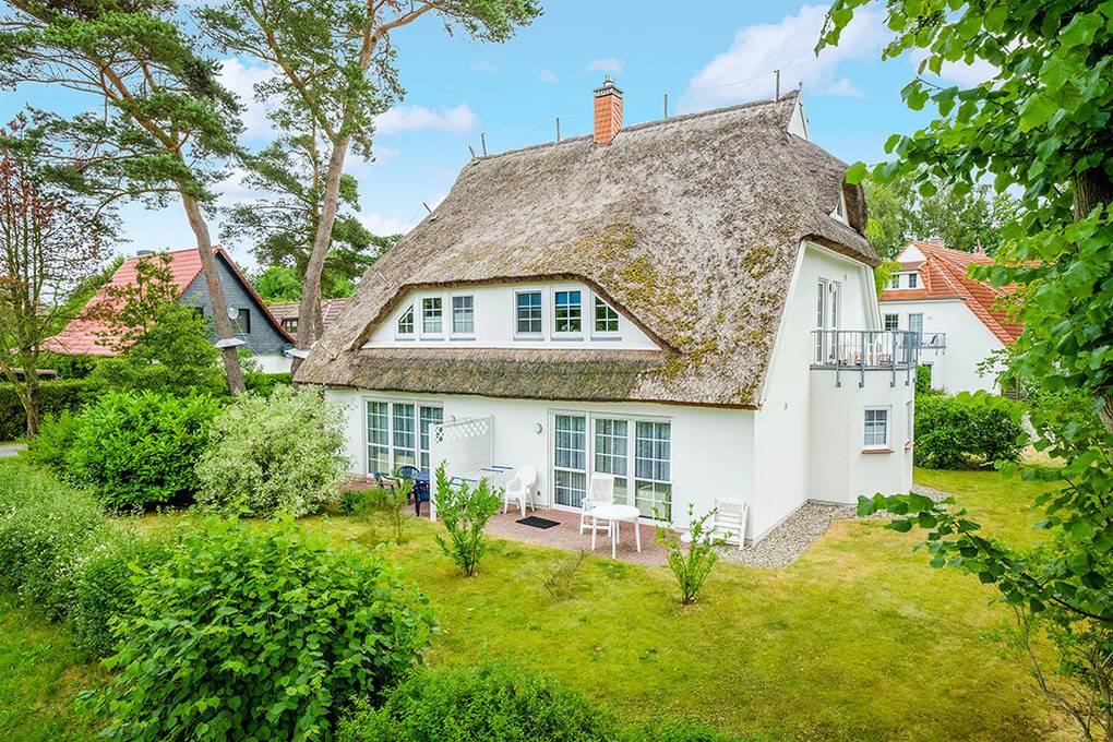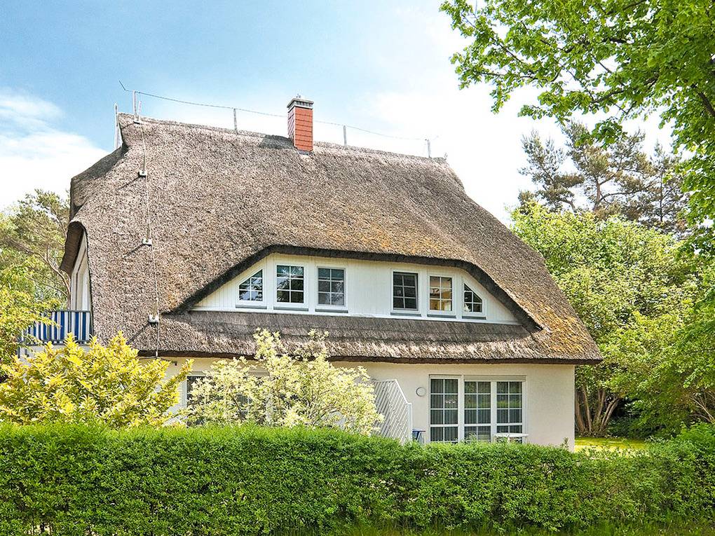 Haus: Landschaftstypisches Reetdachhaus mit Ferienwohnungen auf einem großzügigen Grundstück mit schönem Baumbestand. Geschmackvolle, freundliche Einrichtung, Spülmaschine und Balkon. Kostenloser Internetanschluss über W-Lan. Zentralheizung. 1 Pkw-Stellplatz/Fewo.