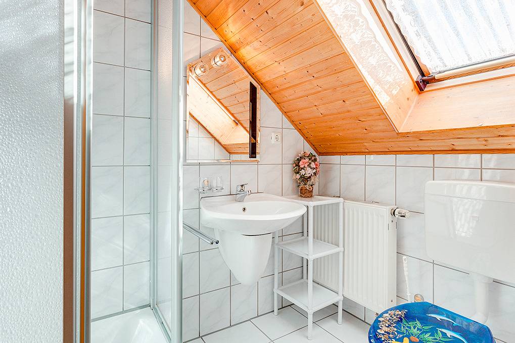 Haus: Regionstypisches Ferienhaus mit 2 Nichtraucher-Ferienwohnungen in der 1. Etage. Separate Vermieterwohnung im Parterre. Kostenloser Internetzugang über W-Lan. Gemütliche Einrichtung. Separate Sitzecke im Garten des Vermieters. 1 PKW-Stellplatz/ Fewo.