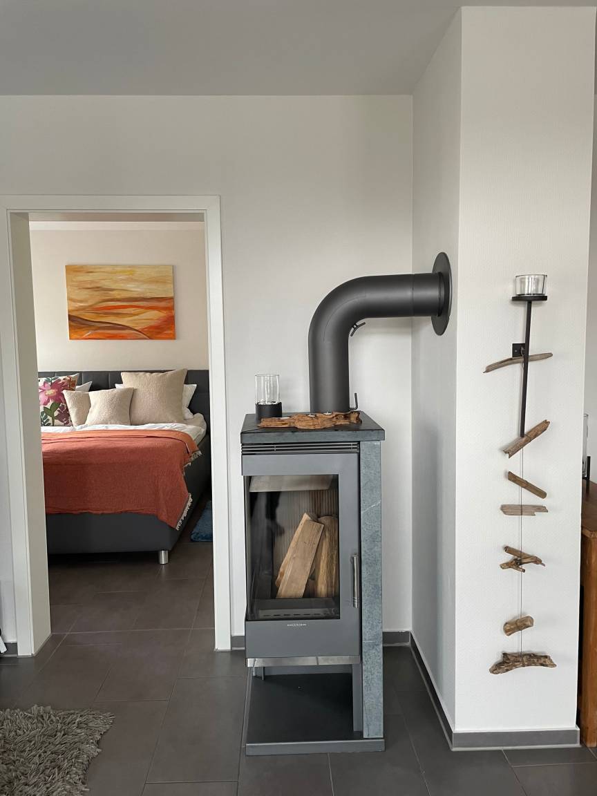 Küchenzeile und einem Badezimmer mit Dusche und WC. Zur weiteren Ausstattung gehören ein Kaminofen, ein Sat-TV, WLAN, eine Musikanlage sowie