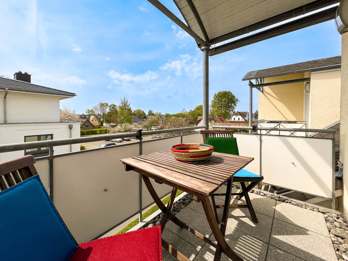 Balkon: Sonniger Balkon mit Gartenmöbeln, ideal für Frühstück im Freien oder entspannte Abende.