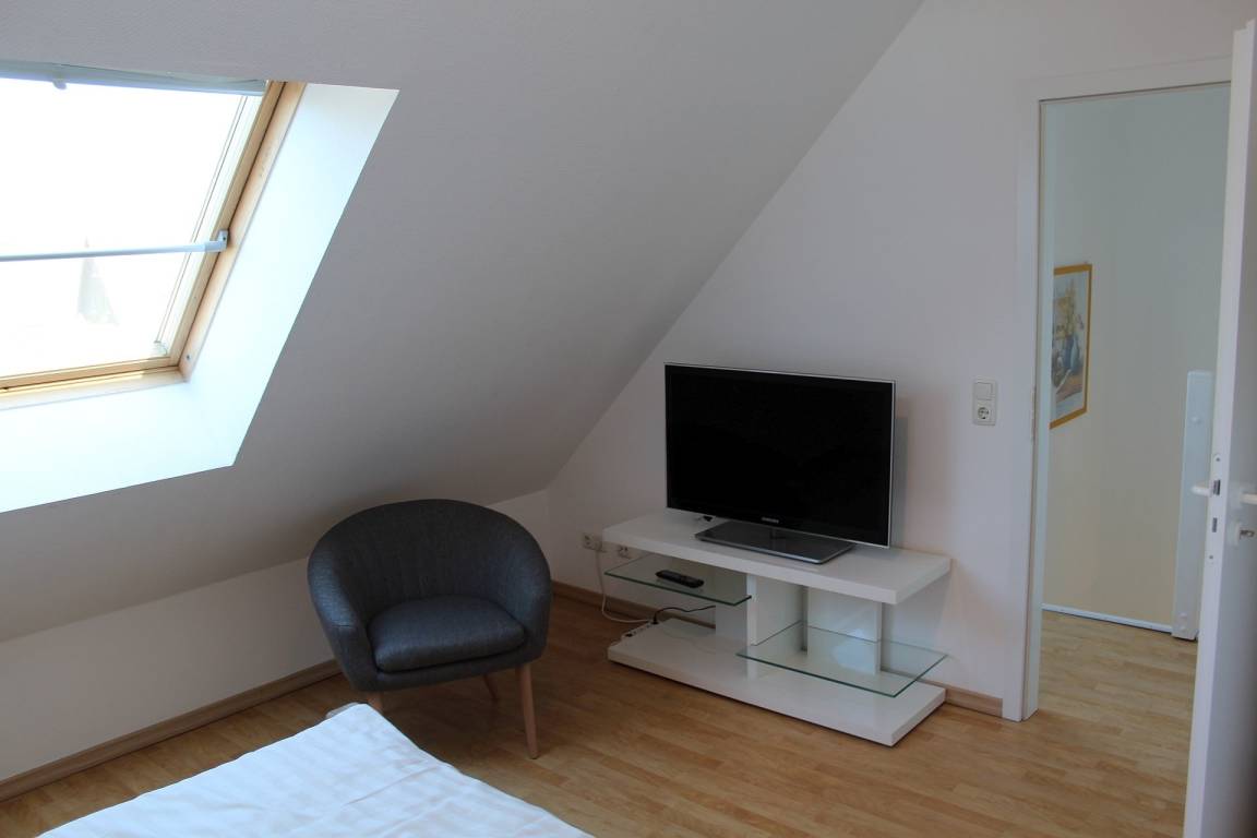 Stilvolle Ferienwohnung in zentraler Lage, für 2-4 Personen, 1. Etage (3 Zimmer, 70 qm), separater Eingang über eine Außentreppe, 2 Schlafzimmer, 1 Wohn/Schlafzimmer, Kaminofen, voll ausgestattete Küchenzeile inkl. Geschirrspüler, Bad mit Dusche/WC, Gäste WC, Flachbild-TV, Kabelanschluß, HiFi-Anlage, Südbalkon, Parkplatz. Mitbenutzung von Waschmaschine/Trockner gegen Gebühr. Freies W-LAN