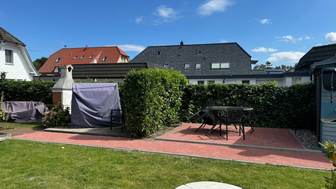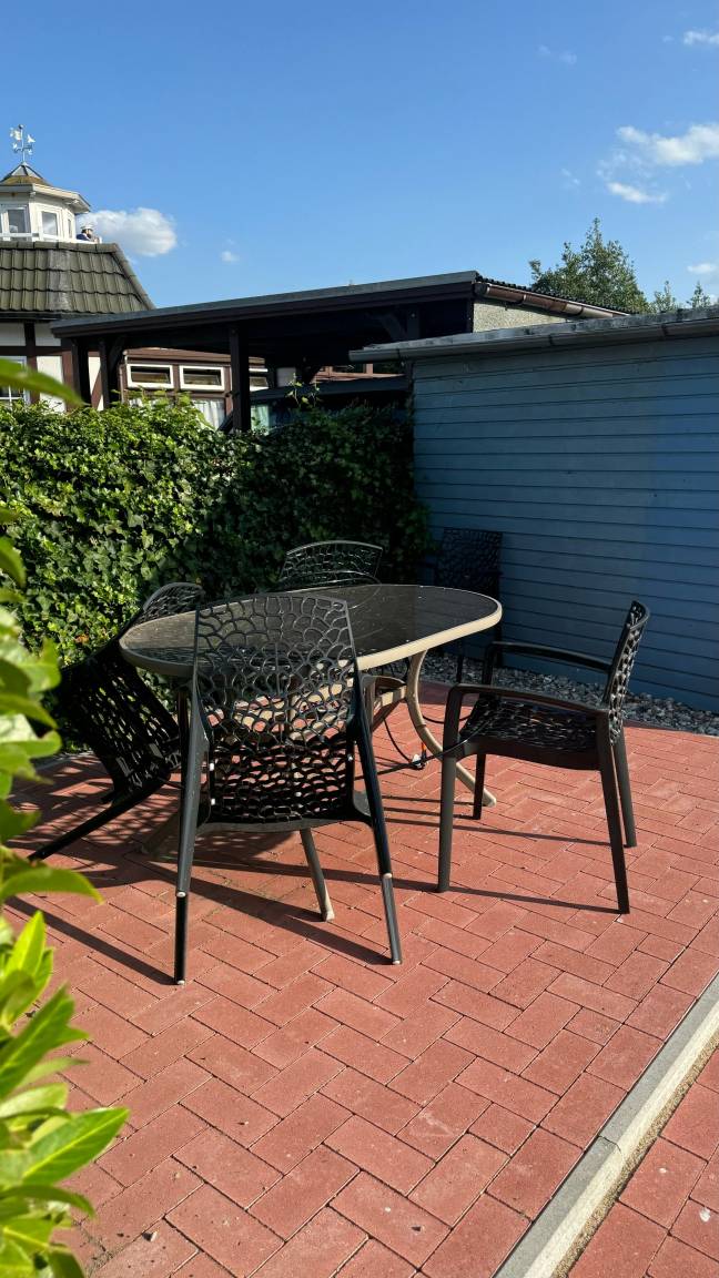 Entspannen Sie unter dem Sonnenschirm ihrer eigenen Terrasse und lassen Sie sich vom Charme der Umgebung verzaubern. Schirm und Matratze für die Chillout.Muschel finden sich im angrenzenden Fahrradraum.