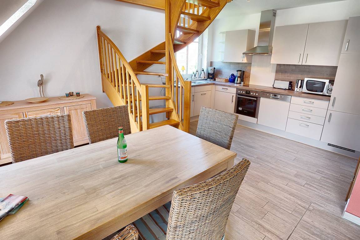 Ruhige und zentrale Lage, moderne Einrichtung, FW im 1 u. 2 OG, 5 Min zum Strand, Geschirrsp., SAT-TV, 2x Dusche/WC , 2 SZ, eines davon im DG ohne Tür vorhanden.