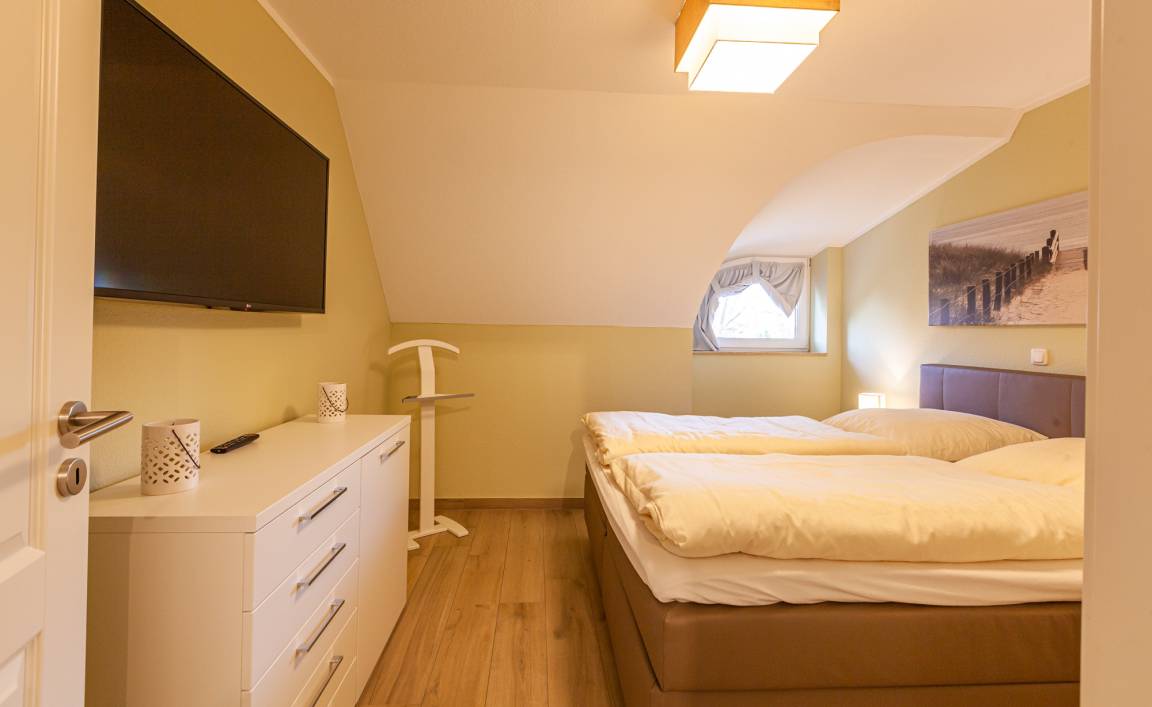 1 x bodengleiche Dusche / WC). Zur weiteren Einrichtung gehören zwei LCD-TV's mit SAT-TV und WLan im ganzen Haus, Fußbodenheizung und Fliegenschutzgitter, Waschmaschine, Wäschetrockner, ein Kinderreisebett und Kinderhochstuhl. Eine Terrasse mit Gartenmöbeln, ein Grill sowie ein eigener Garten. Zwei Pkw-Stellplätze, ein Fahrradabstellraum, stehen Ihnen zur Verfügung. Die Entfernung zum Strand beträgt ca. 900 Meter und zum Zentrum sind es ca. 10 Minuten Fußweg. Ein Kinderspielplatz ist in der Nähe.