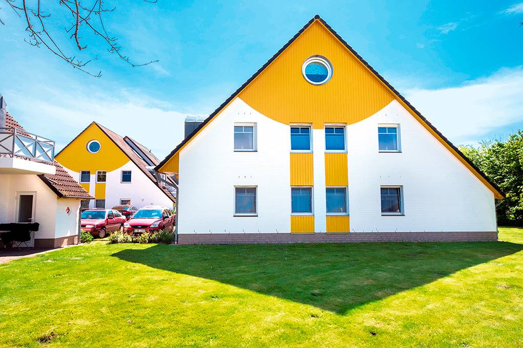 Haus: Drei Apartmenthäuser mit großzügigen, komfortablen Ferienwohnungen auf parkähnlich angelegtem Grundstück. Geschmackvolle, freundliche Einrichtung. Jede Fewo mit Spülmaschine, Waschmaschine. Zentralheizung. Nichtraucherferienwohnungen. Terrasse oder Balkon. Gemeinschaftlicher Garten mit Rasenfläche. 1 Pkw-Stellplatz/Fewo.
