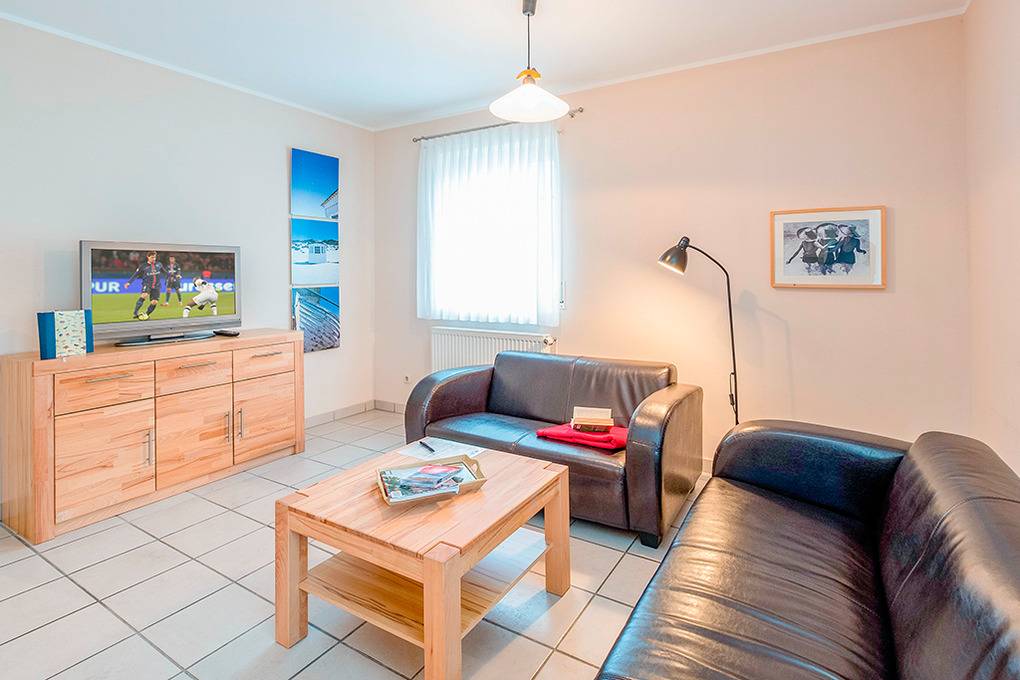 D 67.3303 Wohnung 1-4 Pers.: 3-Zimmerwohnung, 68 qm Wohnfläche, Parterre. Wohn-/Essraum mit Sitzgarnitur, Sat-TV, Esstisch, moderner Küchenzeile (Backofen, Spülmaschine). Doppelzimmer. 2-Bettzimmer. Bad: Du, Wb, WC, Waschmaschine. Terrasse.