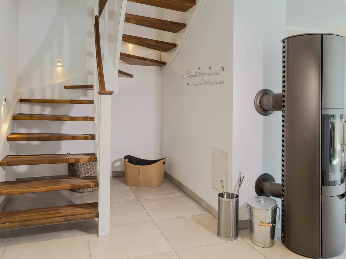 Im offenen Wohnbereich sorgt der Kamin für sanfte Wärme und wird schnell zum Lieblingsplatz – ideal für Spieleabende, entspannte Gespräche oder einfach eine ruhige Stunde mit einem guten Buch.