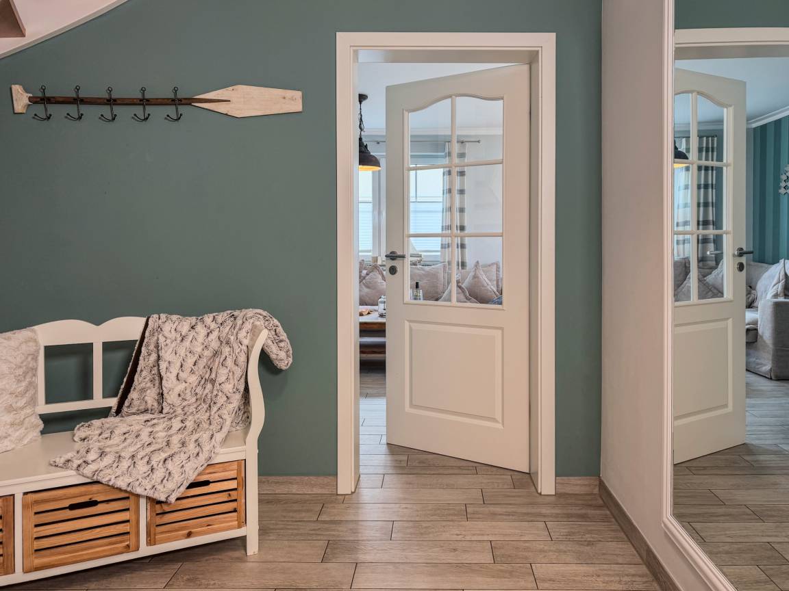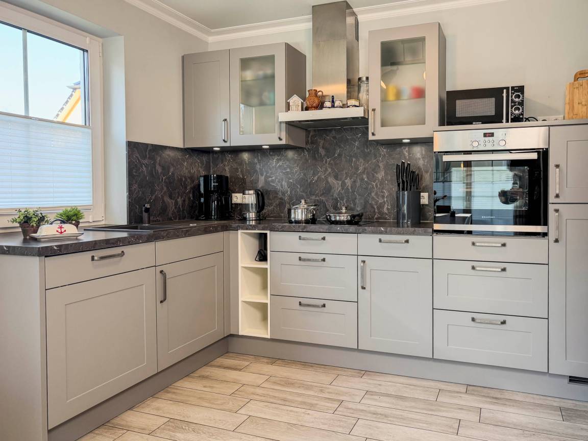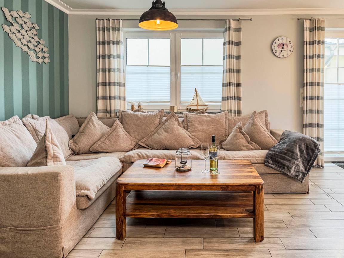 Das Ferienhaus Windspiel empfängt Sie mit einer warmen und einladenden Atmosphäre. Der großzügige Wohnbereich mit Kamin ist das Herz des Hauses und lädt zu entspannten Abenden ein – sei es bei einem guten Buch oder einem gemeinsamen Spieleabend. Die moderne Küche ist vollständig ausgestattet, sodass Sie mühelos köstliche Mahlzeiten für Ihre Liebsten zubereiten können.