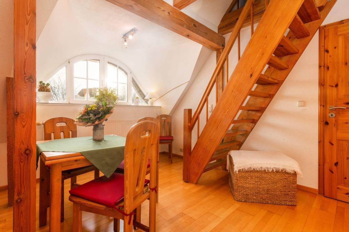 Die Ferienwohnung Rosengarten in Zingst ist ideal für bis zu 3 Personen und bietet Komfort, eine voll ausgestattete Küche, ein entspannendes Bad und ist umgeben von beeindruckender Natur und Stränden.