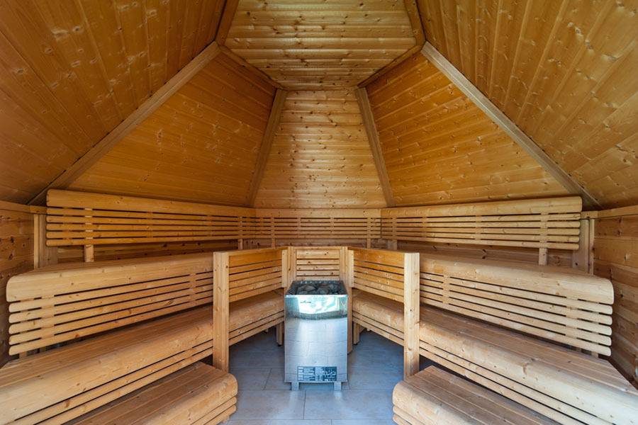 Die zur Wohnanlage gehörende Sauna lädt zum Entspannen ein. eine Waschmaschine und Trockner