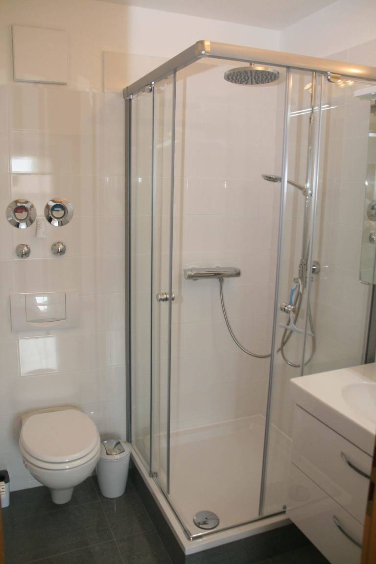 Die Nichtraucherwohnung liegt im 1. Obergeschoss und besitzt einen Südbalkon mit Gartenmöbeln.