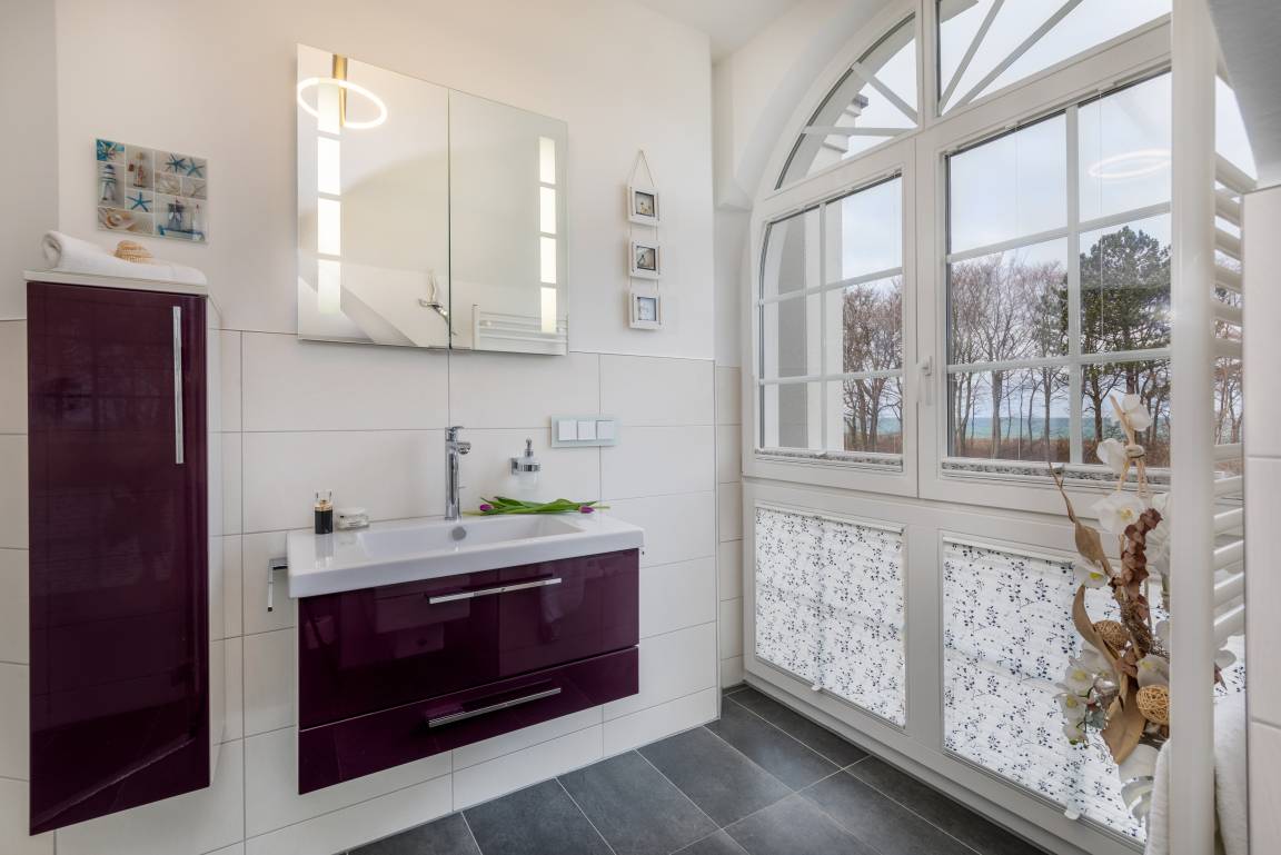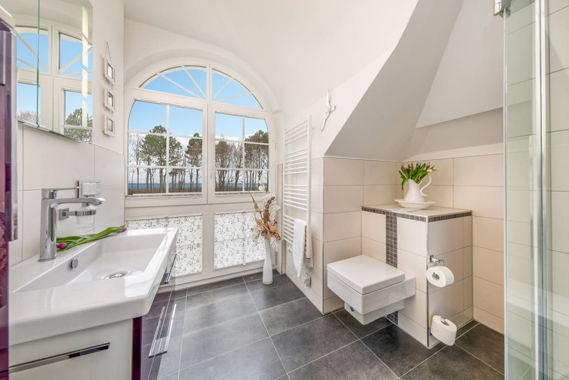 - die bodentiefen Fenster in allen Räumen ermöglichen einen wunderschönen Blick zum Deich und zur Ostsee und lassen viel Licht in Ihre Ferienwohnung.