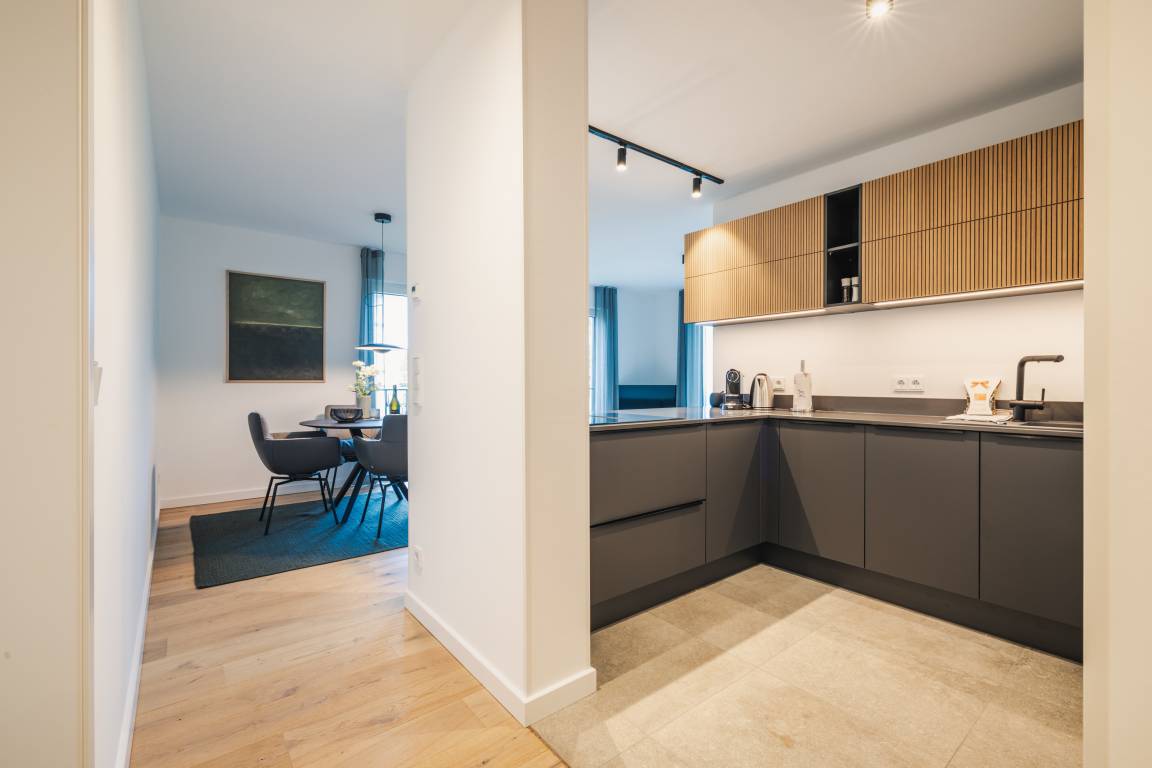 Modern ausgestattete Einbauküche mit hochwertigen Geräten – ideal für alle, die auch im Urlaub gern selbst kochen