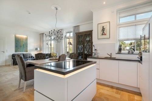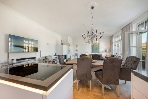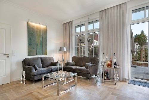 ***Wohnen im stylischen Ambiente mitten im Herzen von ZIngst*** Eine Mischung aus Luxus und Moderne prägen das stylische Ambiente der großzügig und offen konzipierten Wohnung im Erdgeschoss, geprägt durch eine wohltuend klare Linie, verbunden mit hochwertigen Materialien sowie liebevollen Details. Auf gut 90 qm können sich vier Personen in zwei Doppelschlafzimmern wohlfühlen. Das Wohn- Esszimmer mit Kamin und einer offenen Küche inklusive einer Kochinsel lässt für die Gäste keine Wünsche offen. Die Küche ist auf höchstem Niveau ausgestattet und beinhaltet einen Induktionsherd, Mikrowelle und Backofen, Geschirrspüler sowie Kühlschrank (inkl. Eisfach) und einen Weinkühlschrank. 2 Badezimmer mit Dusche und WC (1 Tageslichtbad), 2 Doppelschlafzimmer mit großzügigen Schränken, Textilscreens an allen Fenstern, abdunkelnde Stores in den Schlafzimmern, Waschmaschine/'Trockner innerhalb der Wohnung, Tiefgaragenstellplatz (Nr.1) im Haus,hochwertige Gartenmöbel mit großem Esstisch, Sonnenschirm sowie Sonnenliegen, Außensauna (finnisch oder bio), Gartenhaus sowie großzügig angelegter Garten mit diversen Hortensien und vielen weiteren Pflanzen/Bäumen mit zusätzlichen Kunstgegenständen, WLAN, drei große TV's,