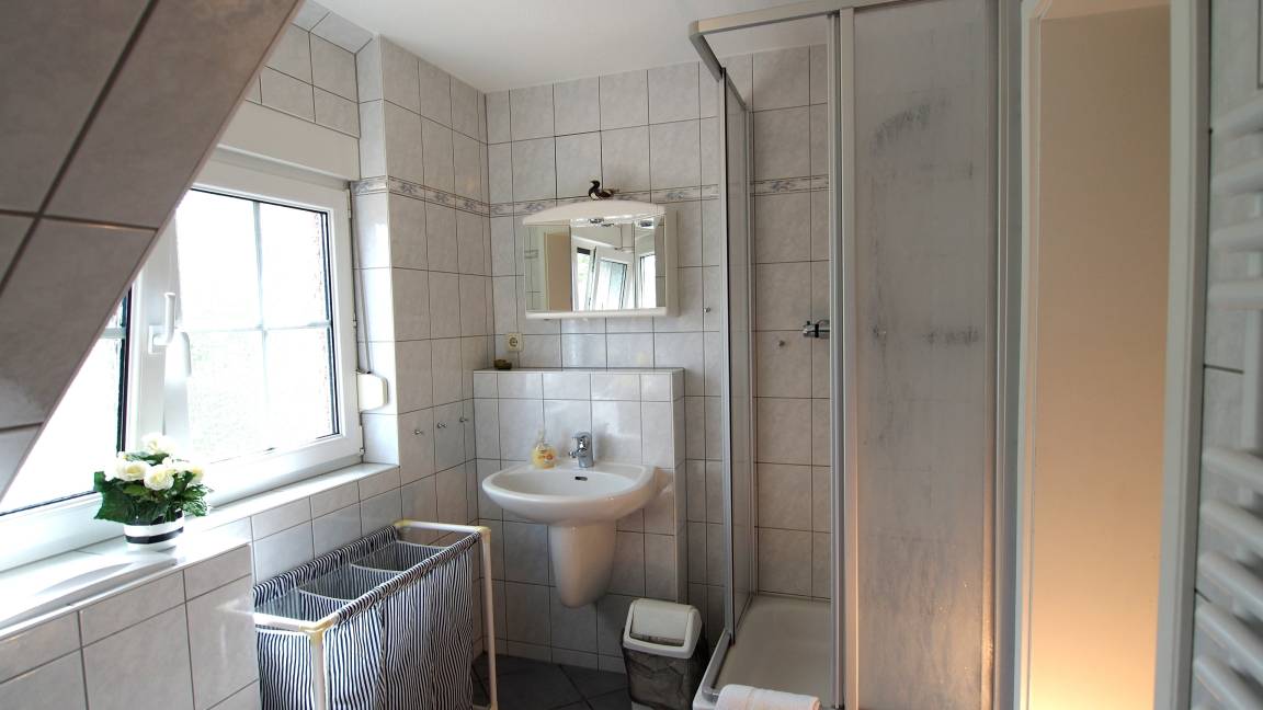 Bei getrennter Anmietung einer der beiden Ferienwohnungen kann die Innentreppe geschlossen werden, so dass die Wohnung im Dachgeschoss über einen separaten Zugang über eine Außen-Wendeltreppe begehbar ist.