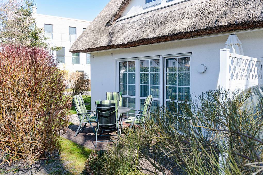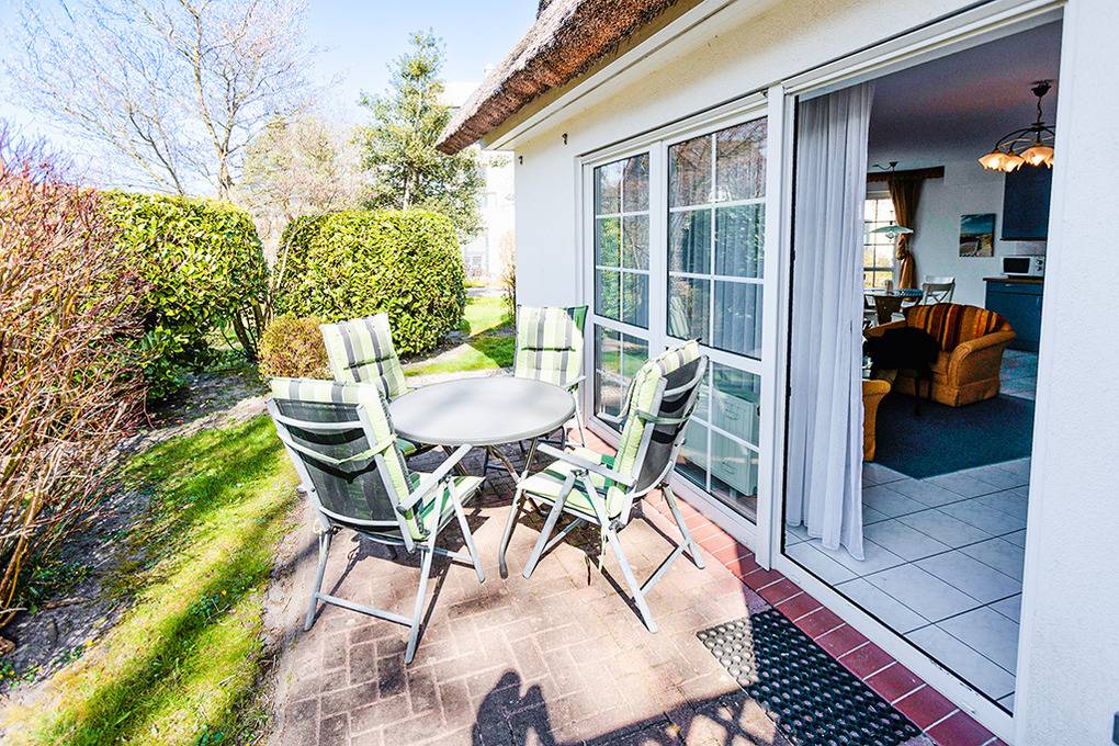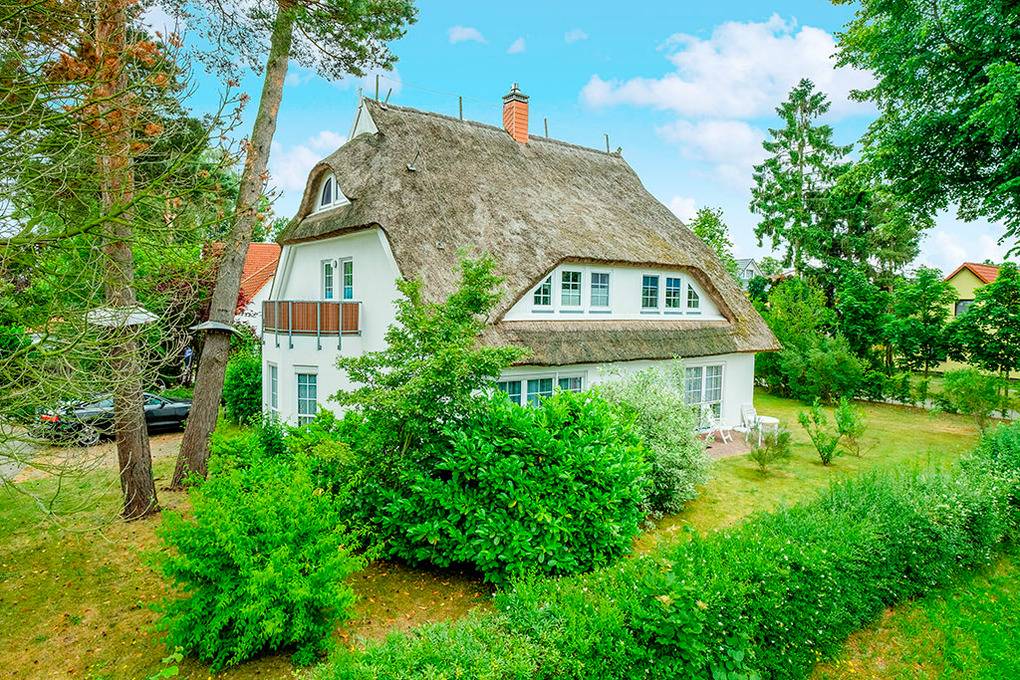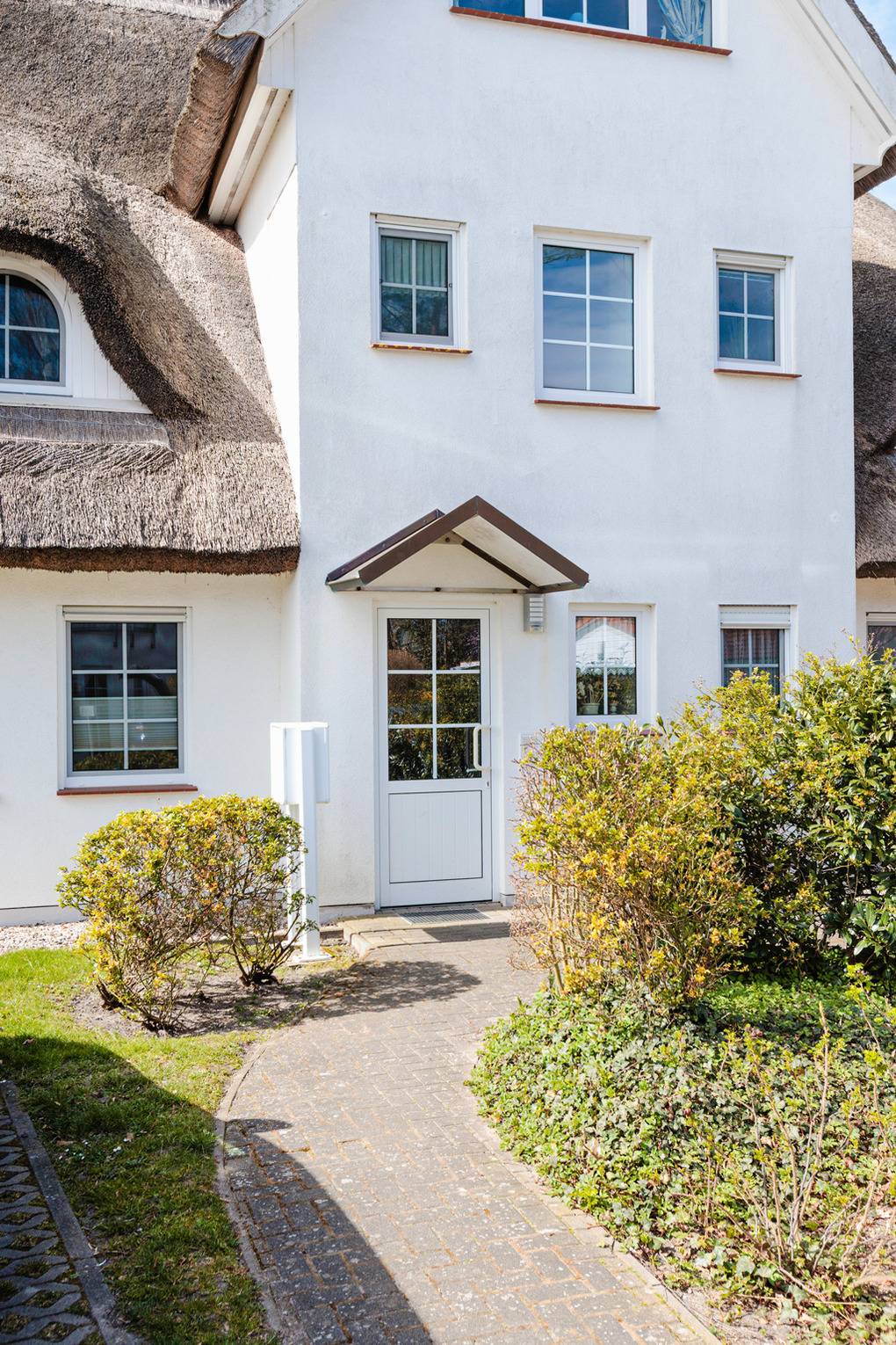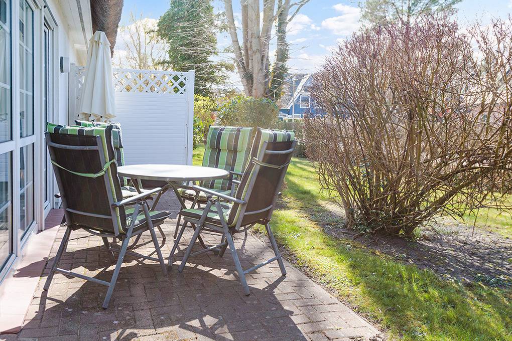 Haus: Landschaftstypisches Reetdachhaus mit Ferienwohnungen auf einem großzügigen Grundstück mit schönem Baumbestand. Geschmackvolle, freundliche Einrichtung, mit Spülmaschine und Terrasse. Kostenloser Internetanschluss über W-Lan. Zentralheizung. 1 Pkw-Stellplatz.