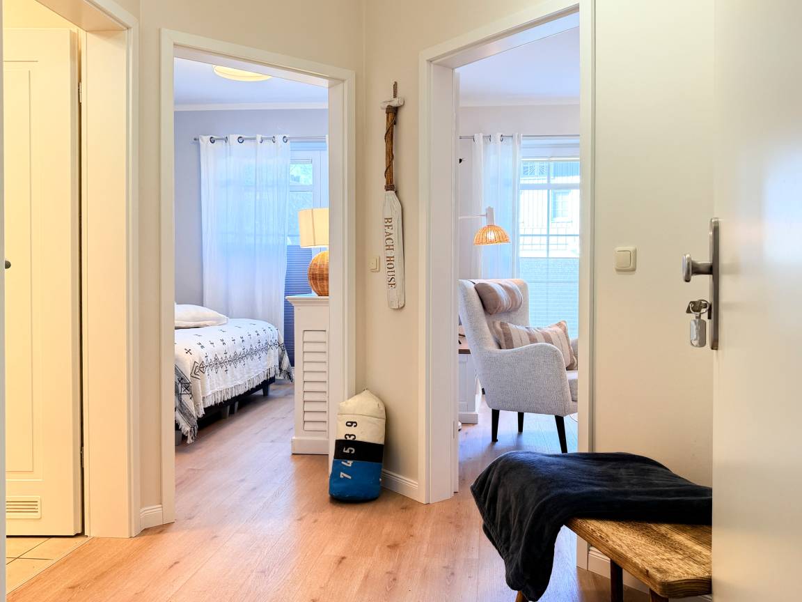 Die Nichtraucherwohnung bietet mit ihrer liebevollen Einrichtung und praktischen Ausstattung eine warme und einladende Atmosphäre. Ob Sie gemütliche Stunden auf der Terrasse verbringen, in der Saunaoase entspannen oder die Umgebung erkunden – hier beginnt Ihr Ostseeurlaub direkt vor der Haustür.