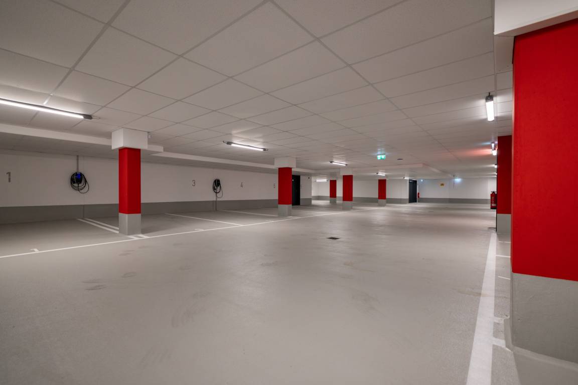 Privater Tiefgaragenstellplatz mit Ladestation, bequem erreichbar über Autoaufzug