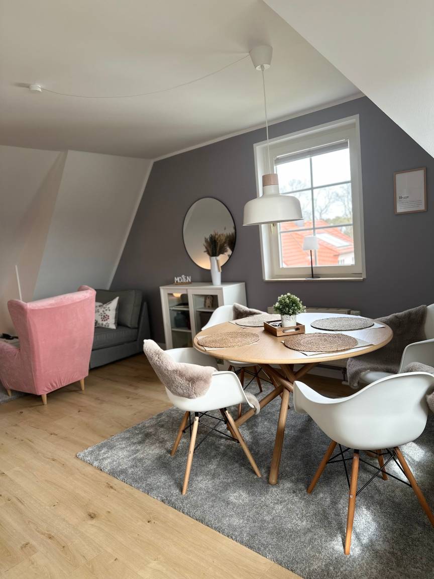 „Sehr schöne kleine Wohnung. Mit dem Fahrrad ist es nicht weit zum Strand und der Supermarkt ist auch zu Fuß gut erreichbar. Es könnte einen Tick mehr Alltagsgeschirr geben, aber das ist echt meckern auf hohem Niveau. Ingesamt sehr gemütlich.“
