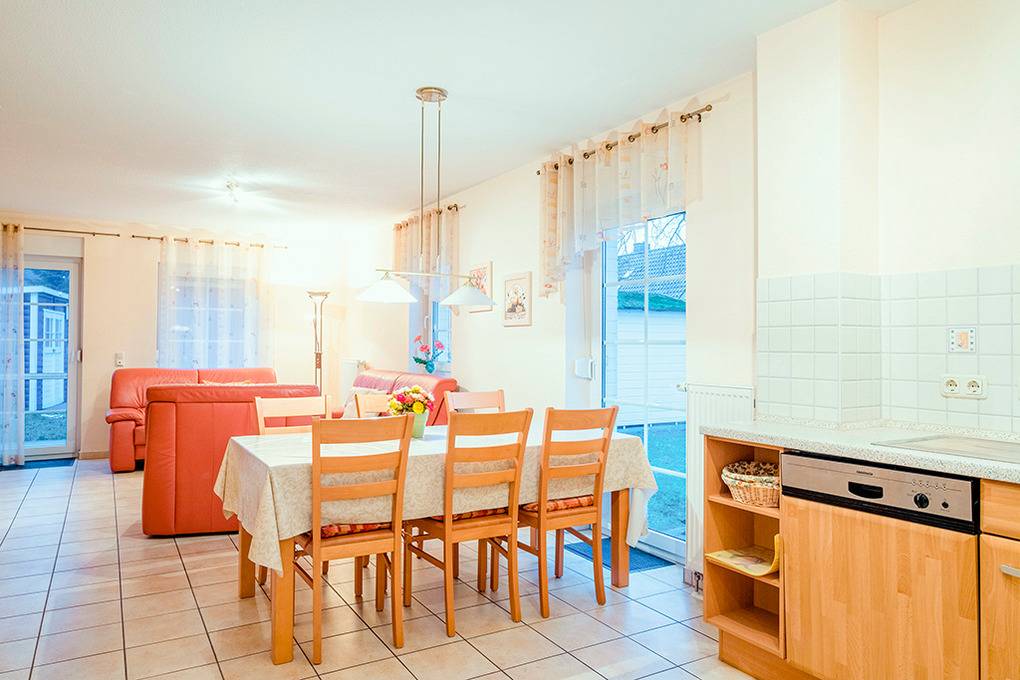 Nebenkosten 32,50 €/Pers. (wird bei Buchung erhoben). Kurtaxe. Bettwäsche leihbar 13 €/Pers (Bestellung, wird bei Buchung erhoben). Handtücher leihbar 9 €/Pers (Bestellung, wird bei Buchung erhoben). Zusätzliche Leistungen 2 Pkw-Stellplätze im Preis inklusive. Kinder Babybett zusätzlich zur maximalen Personenzahl 2,50 €/Tag (Bestellung, wird bei Buchung erhoben). Hochstuhl 2,50 €/Tag (Bestellung, wird bei Buchung erhoben). Haustier 6 €/Tag, max. 1 Hund (Anmeldung, wird bei Buchung erhoben).Räume & Aufteilung