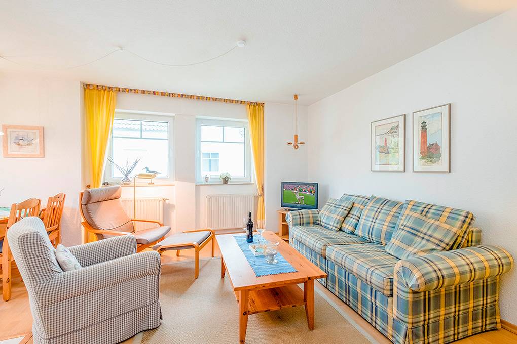 D 67.1508 Wohnung 1-4 Pers.: 3-Zimmerwohnung mit 60 qm Wohnfläche, 1. Etage. Wohn-/Essraum mit Couchgarnitur, Sat-TV, Esstisch, moderner Küchenzeile (Backofen, Spülmaschine). Doppelzimmer. 2-Bettzimmer. Bad/WC. Balkon.