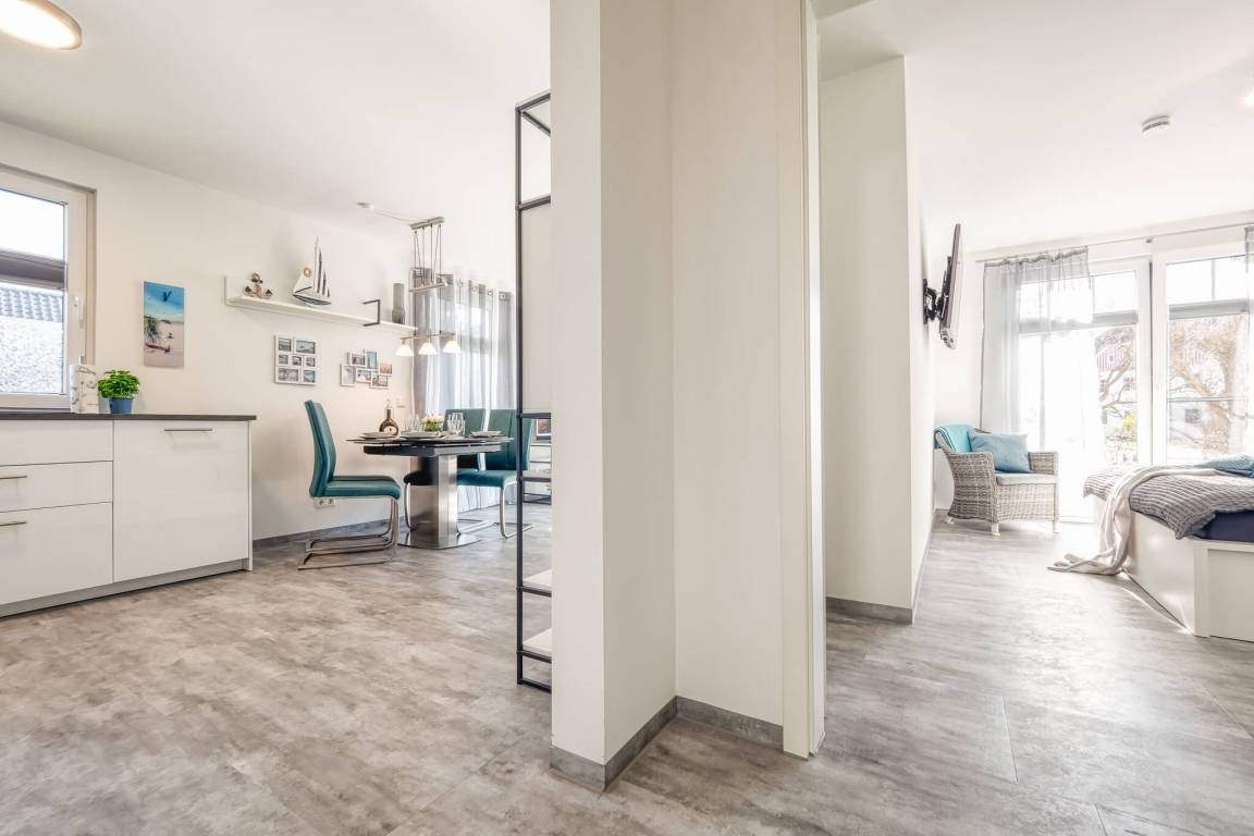 Die ebenerdige 2-Zimmer Ferienwohnung mit dazugehörigem Parkplatz befindet sich in einem Gebäude mit insgesamt 5 Wohnungen. Sie verfügt über einen eigenen Hauseingang.