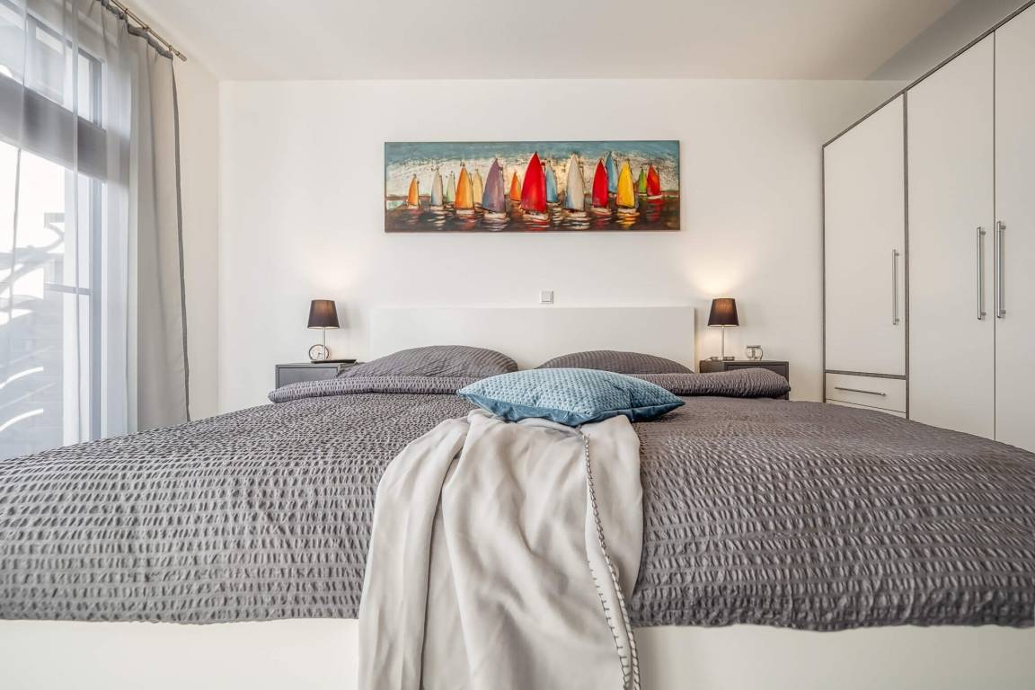 Die helle Wohnung mit Fußbodenheizung ist modern und gemütlich eingerichtet.