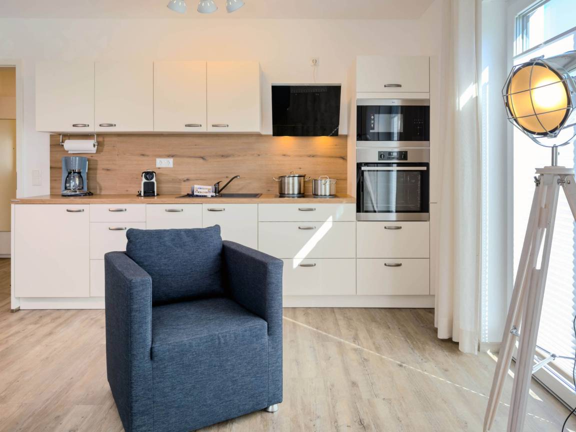 Voll ausgestattete Küche mit Spülmaschine, Backofen und Nespresso-Maschine